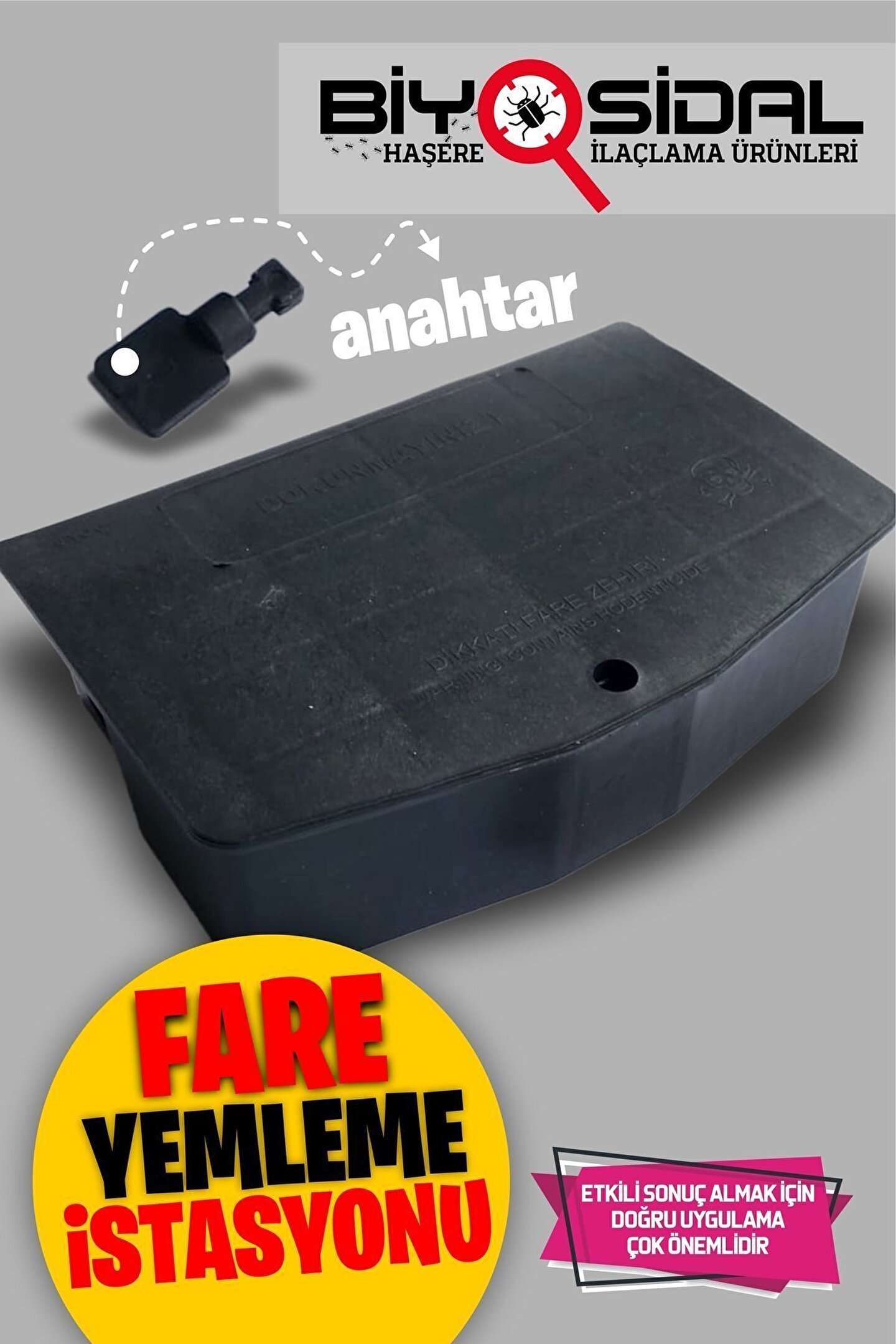 ANAHTAR GÖNDERİLECEKTİR. ; ELEKTROPLAST FARE YEM İSTASYONU ÖZELLİKLERİ PRATİK VE KOLAYLIK SAĞLAR. ; ÜRÜN AÇIKLAMASI FARE YEM İSTASYONU Özellikleri: Pratik Kilit Sistemi Bulunur. ; Kullanım Alanı: Açık ve Kapalı Alanlarda Kullanılır. ; Renk: Siyah Ağırlık: 650 g Menşe: TR FARE YEM İSTASYONU KULLANIMI Giriş ve çıkış delikleri bulunan kemirgen istasyonları, içerideki zehirli yemleri farelerin yedikten sonra oradan ayrılmalarına imkan verir. ; Yani fare, yem istasyonuna girer, zehirli yemi yer ve gider. ; Karanlık bir ortam yaratarak farelerin kendilerini tedirgin hissetmeden yemlere yönelmelerini sağlar. ; KAZANÇ Pratik ve kolaylık sağlar. ; İçerisinde 1 adet fare zehri mevcuttur.;