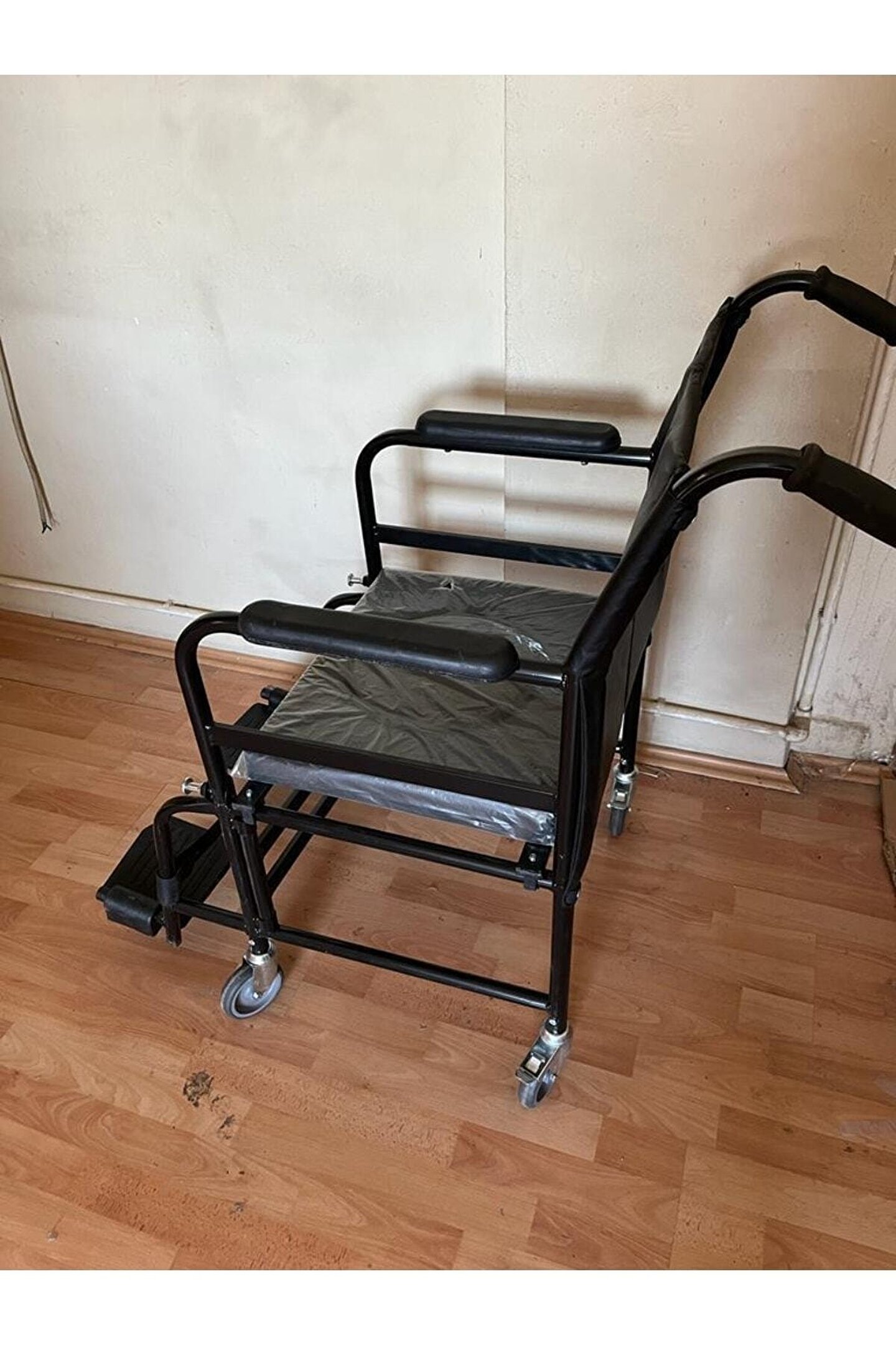 Medikaltec Koridor arabası yan kolları açılan tekerlekli hasta tuvaleti komot koridor Oturma yeri ve sırt kısmı sünger üzeri vinleks(deri) kaplıdır. ; -gövde katlanabilir. ; -ayak koyma pedalları katlanabilir. ; -oturma yeri altında lazımlık bulunur. ; -lazımlık yeri kapalıdır ihtiyaç durumunda açabilirsiniz. ; -360 derece dönebilen dört adet tekerlek bulunmaktadır. ; -arka tekerlekler fren tertibatlıdır. ; -tüm metal aksamı elektrostatik toz boya ile kaplanmıştır. ; Teknik özellikler: Oturma yeri yükseklik 45 cm oturma yeri genişliği 50 cm oturma yeri derinliği 50 cm ürünün uzunluğu 100 cm (asansöre sığma açısından bu ölçü önemlidir);