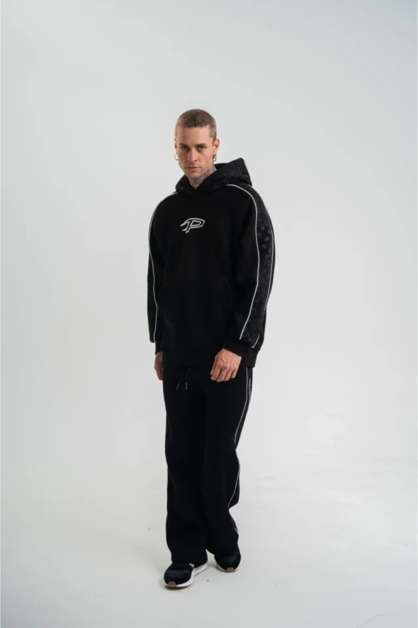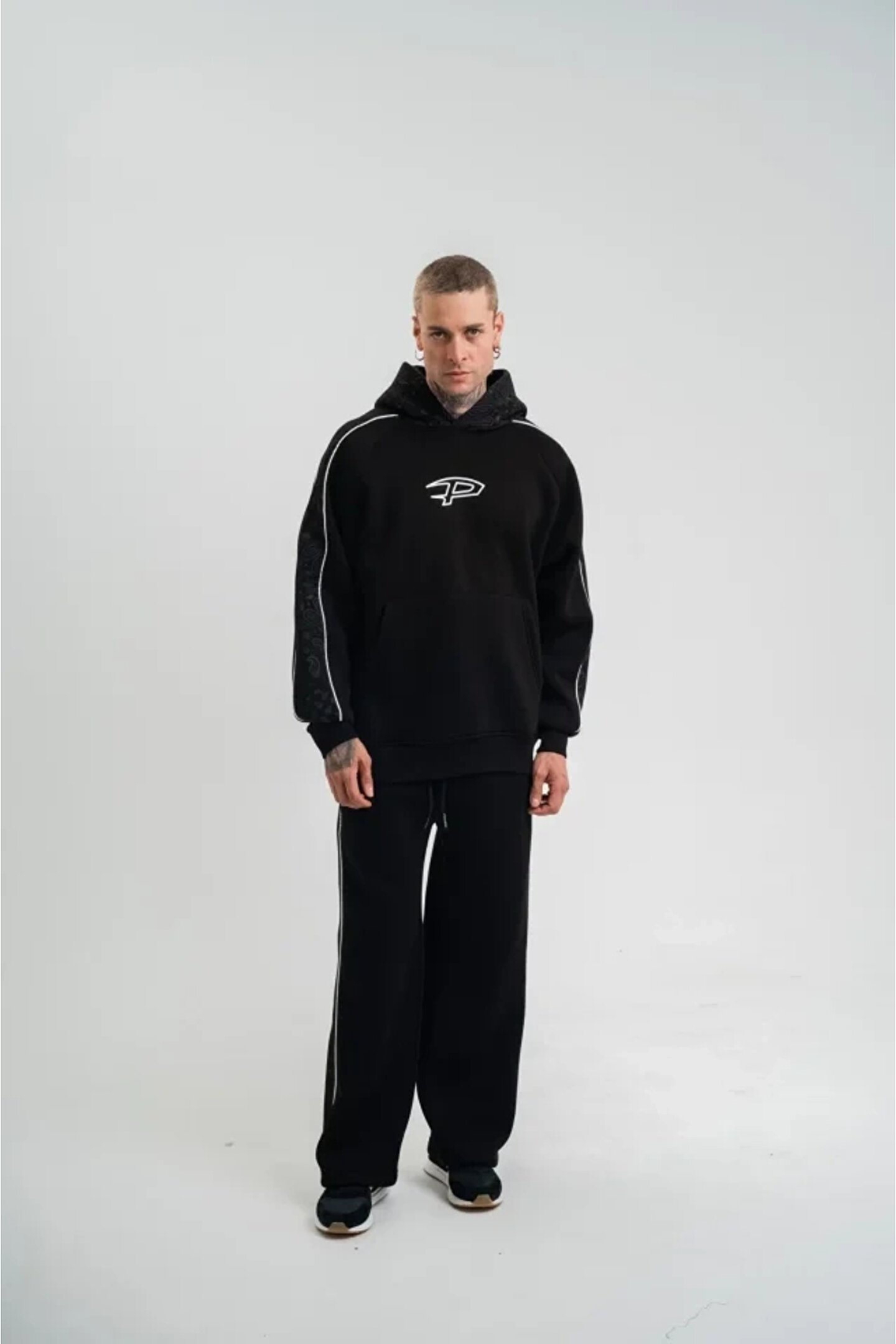 BB Uzun Kol Kapşonlu Ara Biyeli Baggy Eşofman Takım - Siyah