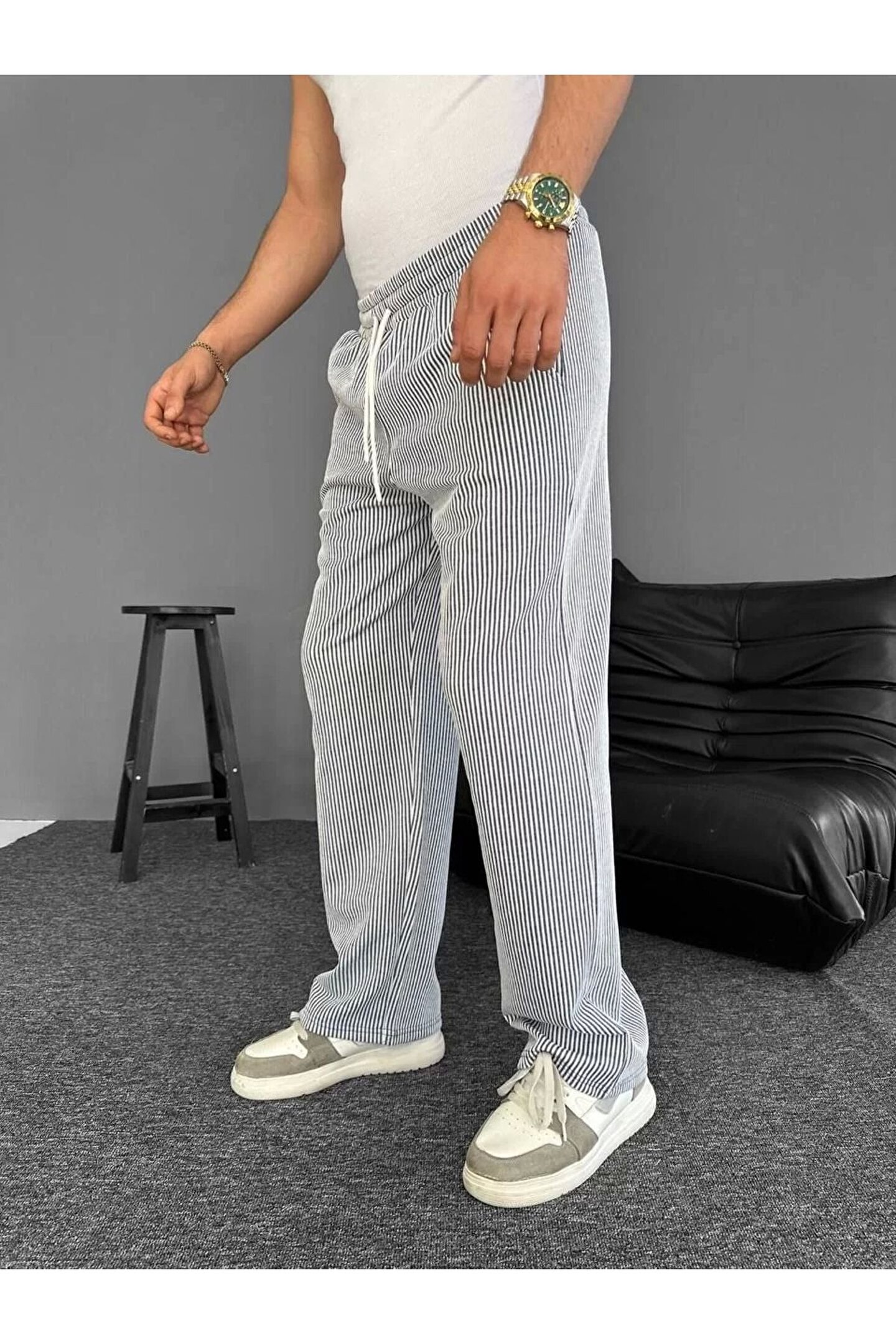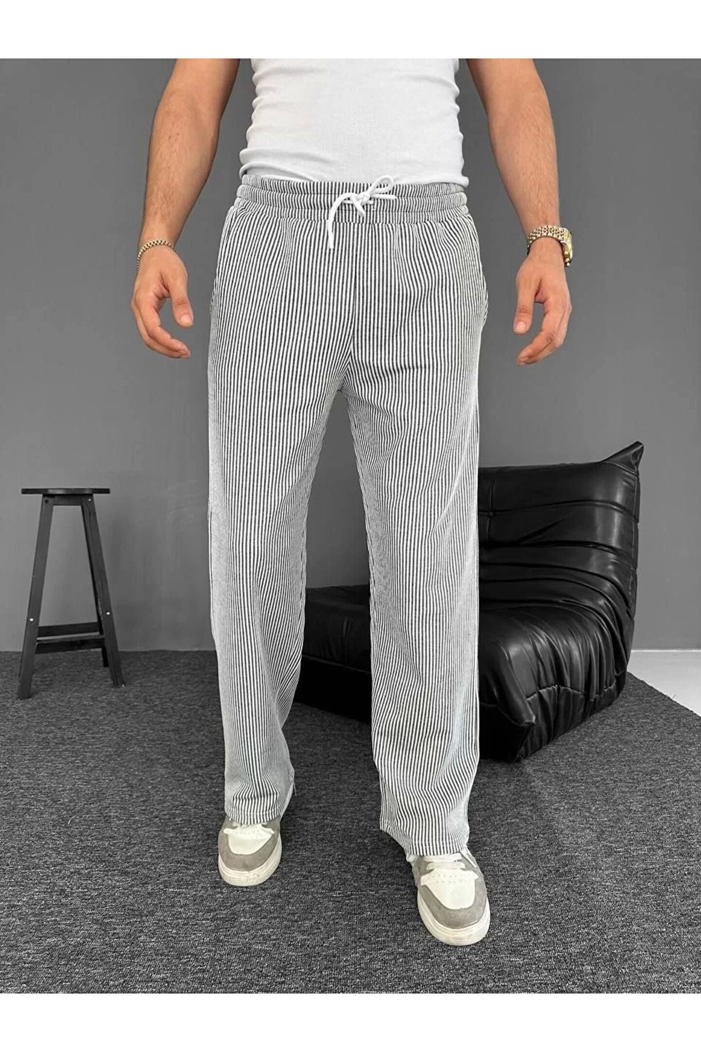 BBbutik MDB u Yolu Çizgili Cepli Pantalon Gri