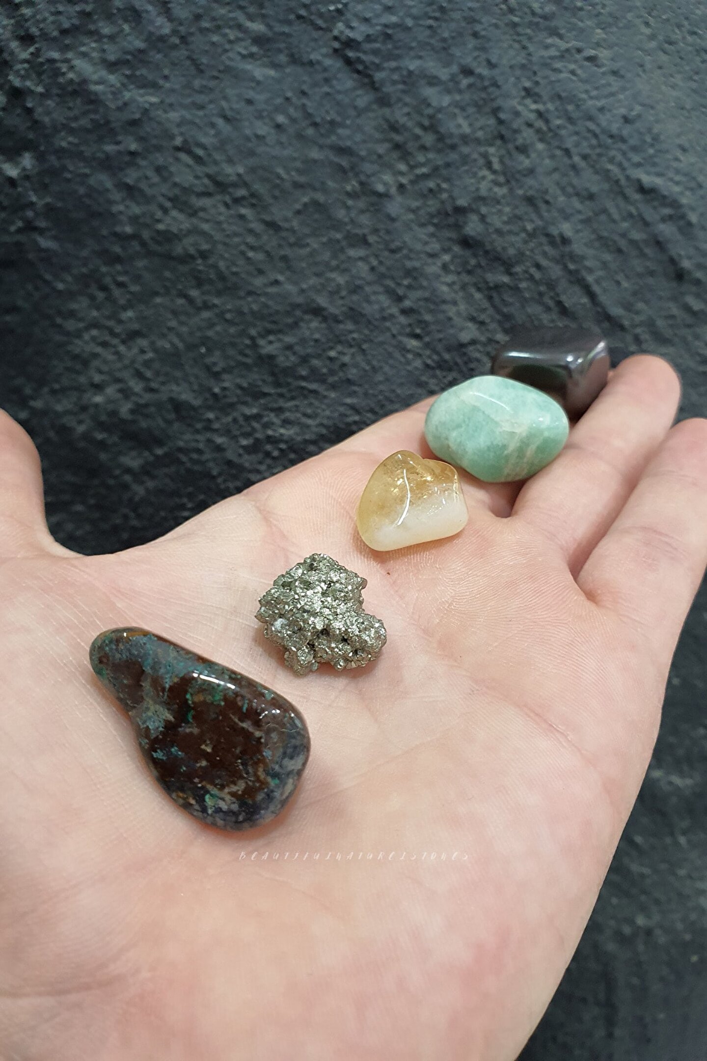 Doğal taşların eşsiz güzelliğini evinize taşıyan bu dekoratif obje, Sitrin, pirit, malahit ve akuamarin gibi değerli taşlardan oluşur; Huzur, para, şans ve bereket gibi olumlu enerjilerle dolu bu taşlar, yaşam alanlarınıza pozitif bir atmosfer katmak için idealdir; Doğal taşların benzersiz desenleri ve renkleriyle dikkat çeken bu obje, dekoratif bir aksesuar olarak da kullanılabilir; Hem işlevsel hem de estetik bir görünüm sunan bu ürün, doğa severlerin ve enerji taşı tutkunlarının beğenisine sunulmuştur;