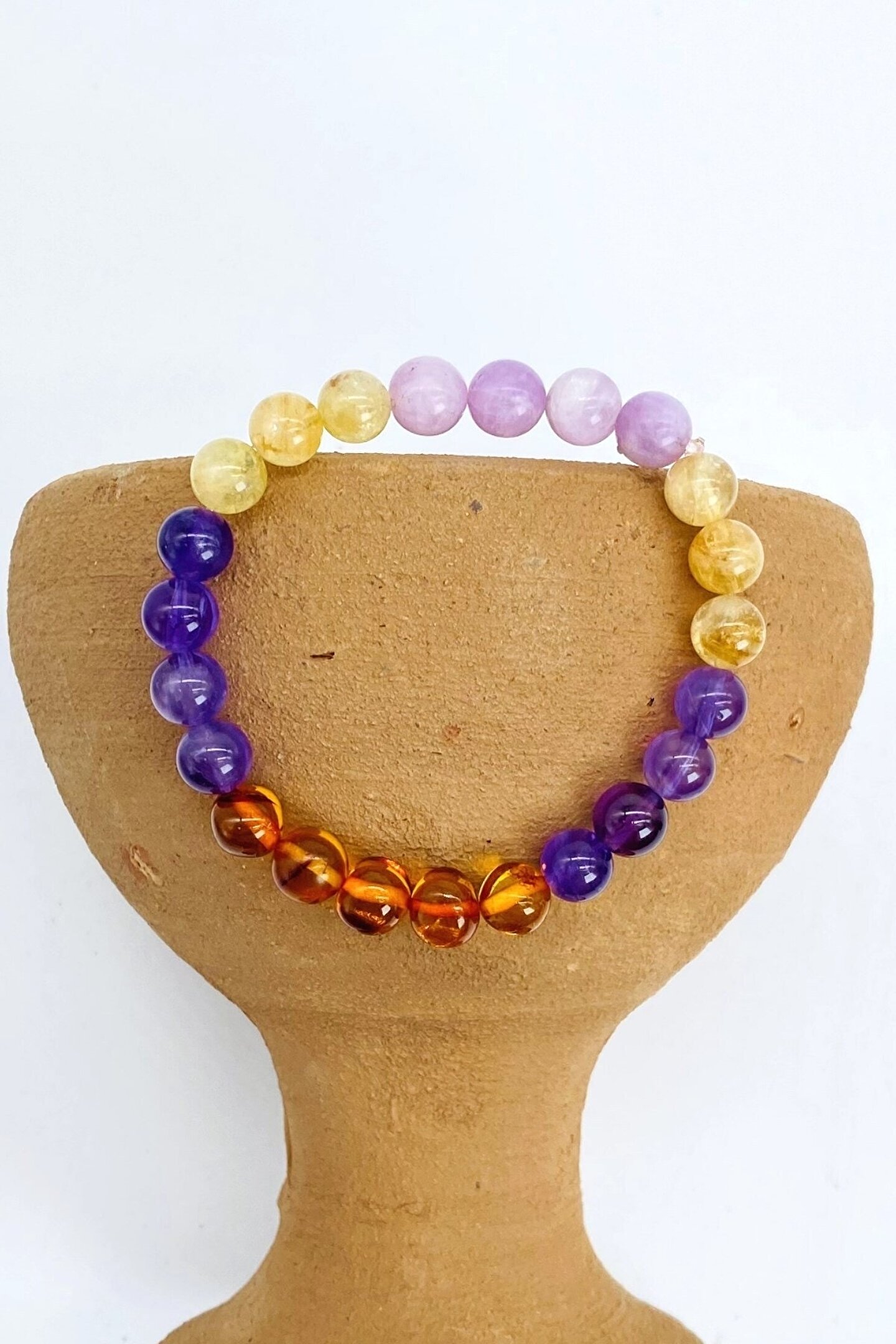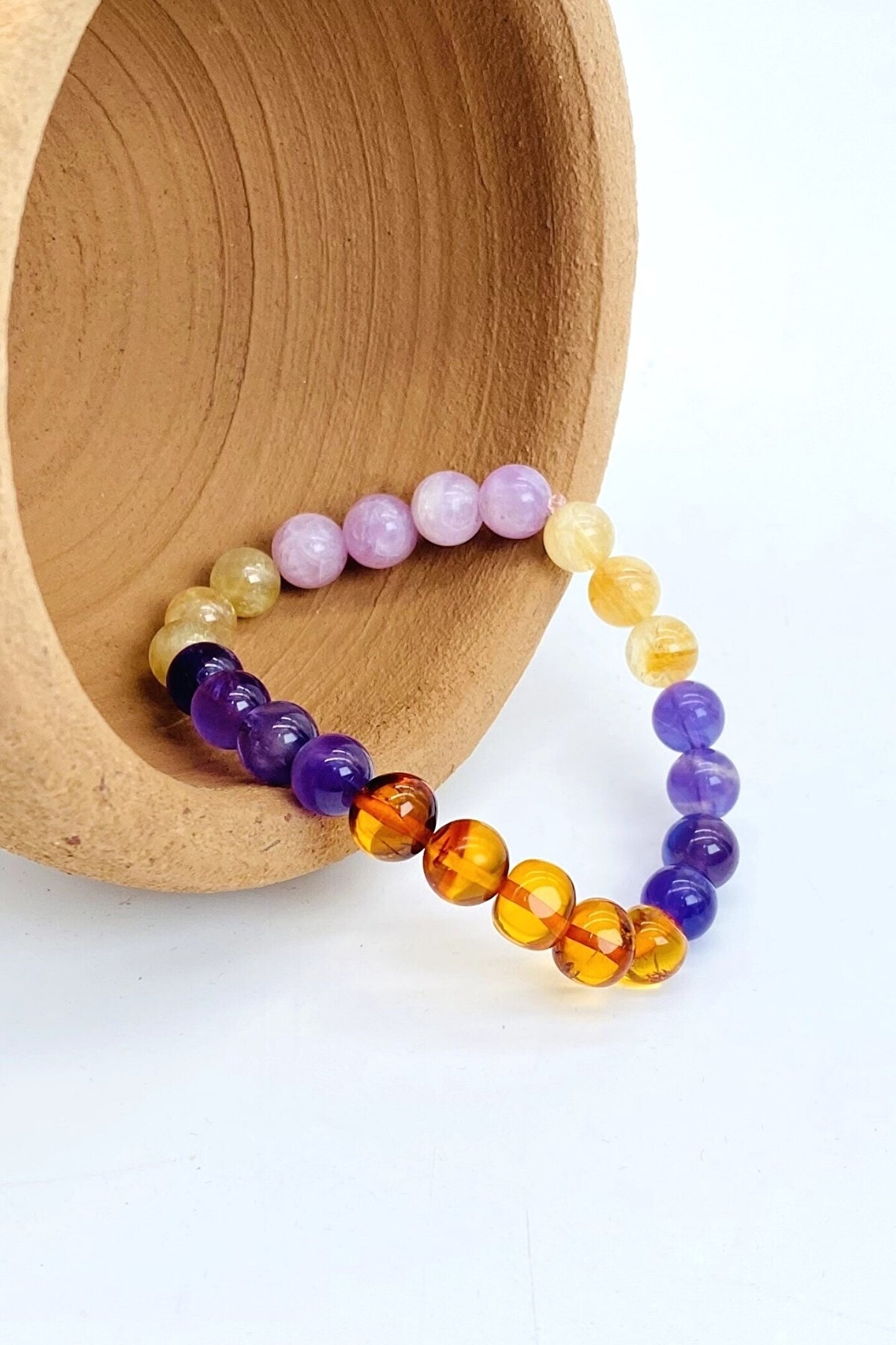 Sertifikalı Özel Tasarım Doğal Taş Bileklik Ürünlerimiz gerçek doğal taştır. ; Sertifikasıyla birlikte gönderilir. ; Birlikte Kullanılan Taşlar Ametist, Dönüşümlü Sitrin, Kunzit, Kehribar Ametist Taşı Neden Tercih Ediliyor Bağımlılıklardan kurtulmaya yardımcı olduğuna inanılır. ; Hafızayı geliştirdiği söylenir. ; Alerjiye, gözlere iyi geldiği söylenir. ; Odaklanmayı kuvvetlendirdiğine, zihinsel dağınıklığı azalttığına inanılır.. ; Bedeni negatif enerjiden arındırmak ve pozitif enerji vermek amacıyla kullanılır. ; Sitrin Taşı Neden Tercih Ediliyor Metabolizmayı hızlandırdığı söylenir. ; Kilo kaybına yardımcı olmak için kullanılır. ; Başarı Taşıdır. ; Kendine güvenme duygusunu güçlendirdiği söylenir. ; Negatif enerjiyi dağıttığı söylenir. ; Zenginliği ifade eder. ; Maddi geliri arttırdığına inanlar vardır. ; Kendisini taşıyan kişiye neşe ve mutluluk duyguları verdiğine inanılır. ; Kunzit Taşı Neden Tercih Ediliyor Vücutta genel iyileşmeyi desteklediğine, migreni hafiflettiği ve herhangi bir fiziksel stresin iyileşmesine yardımcı olduğuna inanılmaktadır. ; Bağımlılıkları yenmek için kullanılmaktadır. ; Kunzit Taşı Neden Tercih Ediliyor Vücutta genel iyileşmeyi desteklediğine, migreni hafiflettiği ve herhangi bir fiziksel stresin iyileşmesine yardımcı olduğuna inanılmaktadır. ; Bağımlılıkları yenmek için kullanılmaktadır. ; Doğal Kehribar Neden Tercih Ediliyor Çocukların diş çıkarma dönemlerinde ağrılarını hafiflettiği bilinir. ; Fosilleşmiş ağaç reçineden yapılır. ; Bu reçine genellikle eski yaprak dökmeyen ağaçlarda bulunur. ; Cilt hastalıkları, solunum yolu hastalıkları ve romatizmada kullanılmıştır.Strese azalttığına inanılır.. ; Depresyona karşı iyi geldiği söyenir. ; Migrene karşı etkili olduğu söylenir.;