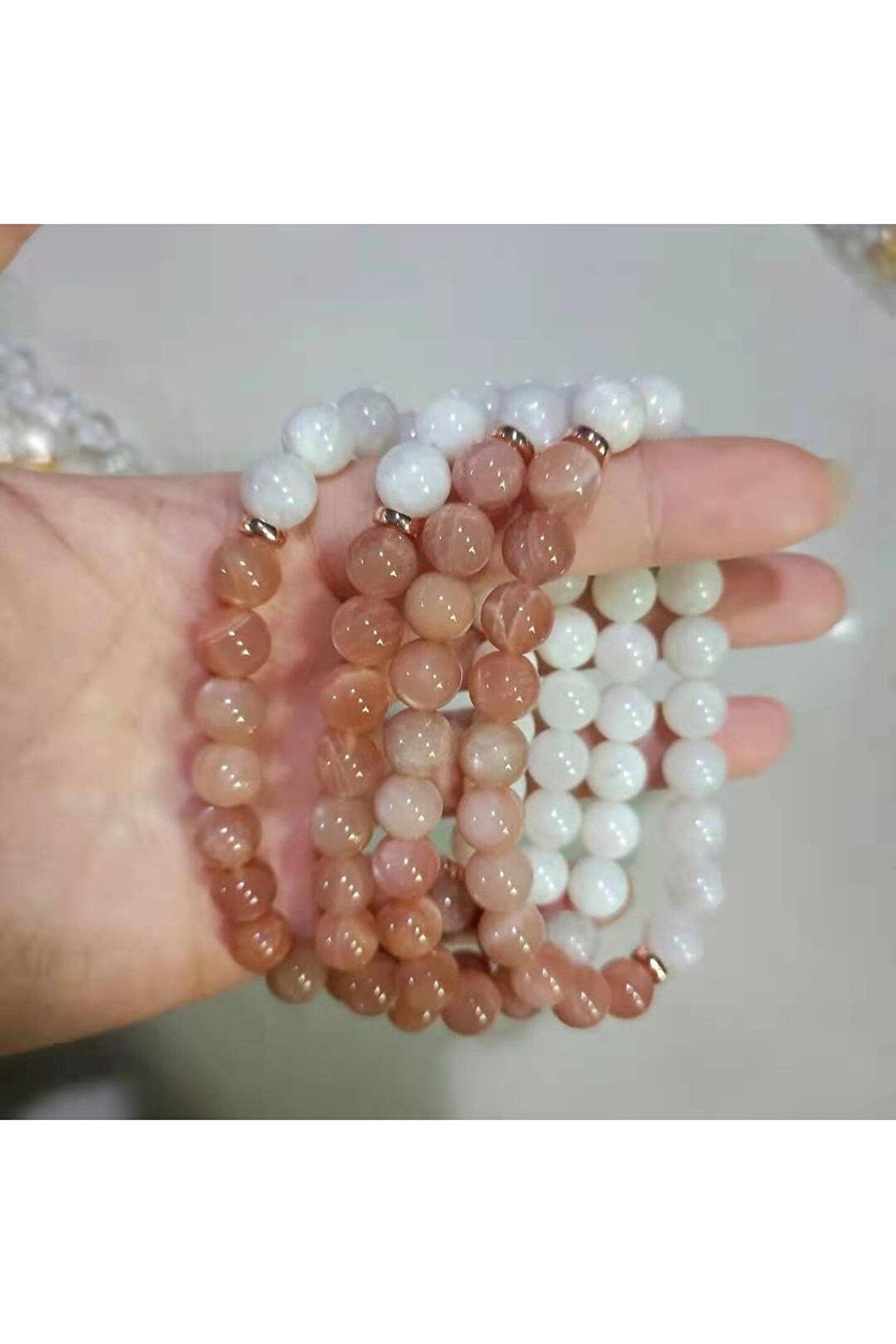 Doğal taş bileklik, Ay taşı ve Güneş taşı gibi değerli doğal taşlardan üretilmiştir.; 8mm kalınlığında olan bu bileklik, şık ve zarif tasarımıyla dikkat çeker.; Doğal taştan yapılmış olması, her bireyin benzersiz bir parça sahibi olmasına olanak tanır.; Günlük kullanım için ideal olan bu bileklik, hem rahatlık hem de estetik bir görünüm sunar.; Herhangi bir kimyasal işleme tabi tutulmadan doğal haliyle sunulan bu bileklik, doğallığını korurken şıklığınızla da ön plana çıkmanızı sağlar.; Doğal taş bilekliğin hafifliği sayesinde gün boyu rahatlıkla takabilirsiniz.;
