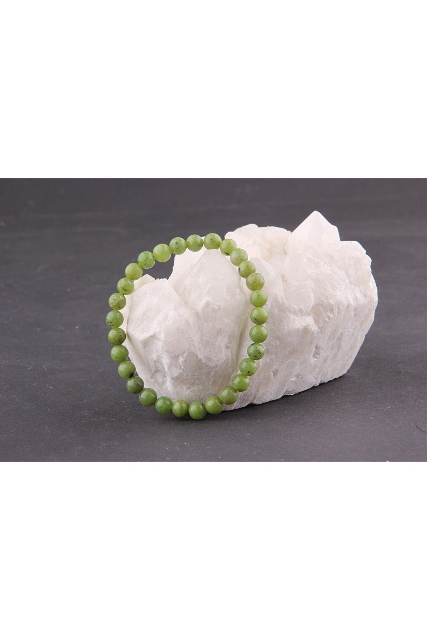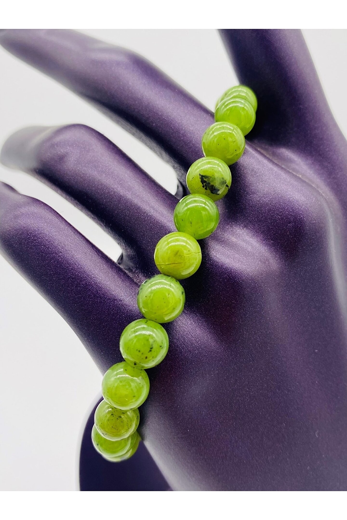 - Doğal yeşim taşı kullanılarak üretilmiş, zarif ve şık bir aksesuar; - 8mm boyutundaki taşlar, bileklikte dikkat çekici bir parlaklık ve estetik bir görünüm sağlar; - Doğal taş materyali ile hem dayanıklılık hem de benzersiz bir dokunuş sunar; - Her bileklik, el yapımı olduğundan her biri eşsiz ve özgün bir tasarıma sahiptir;