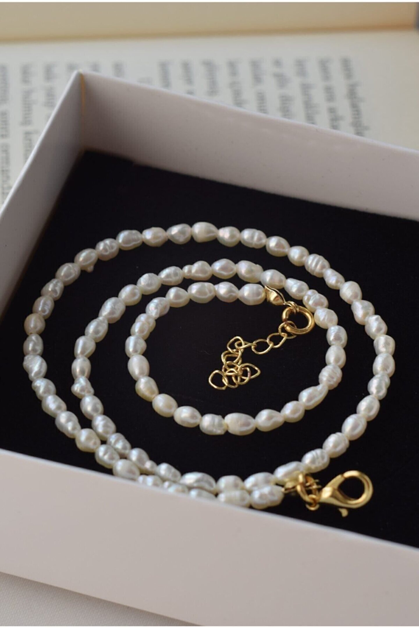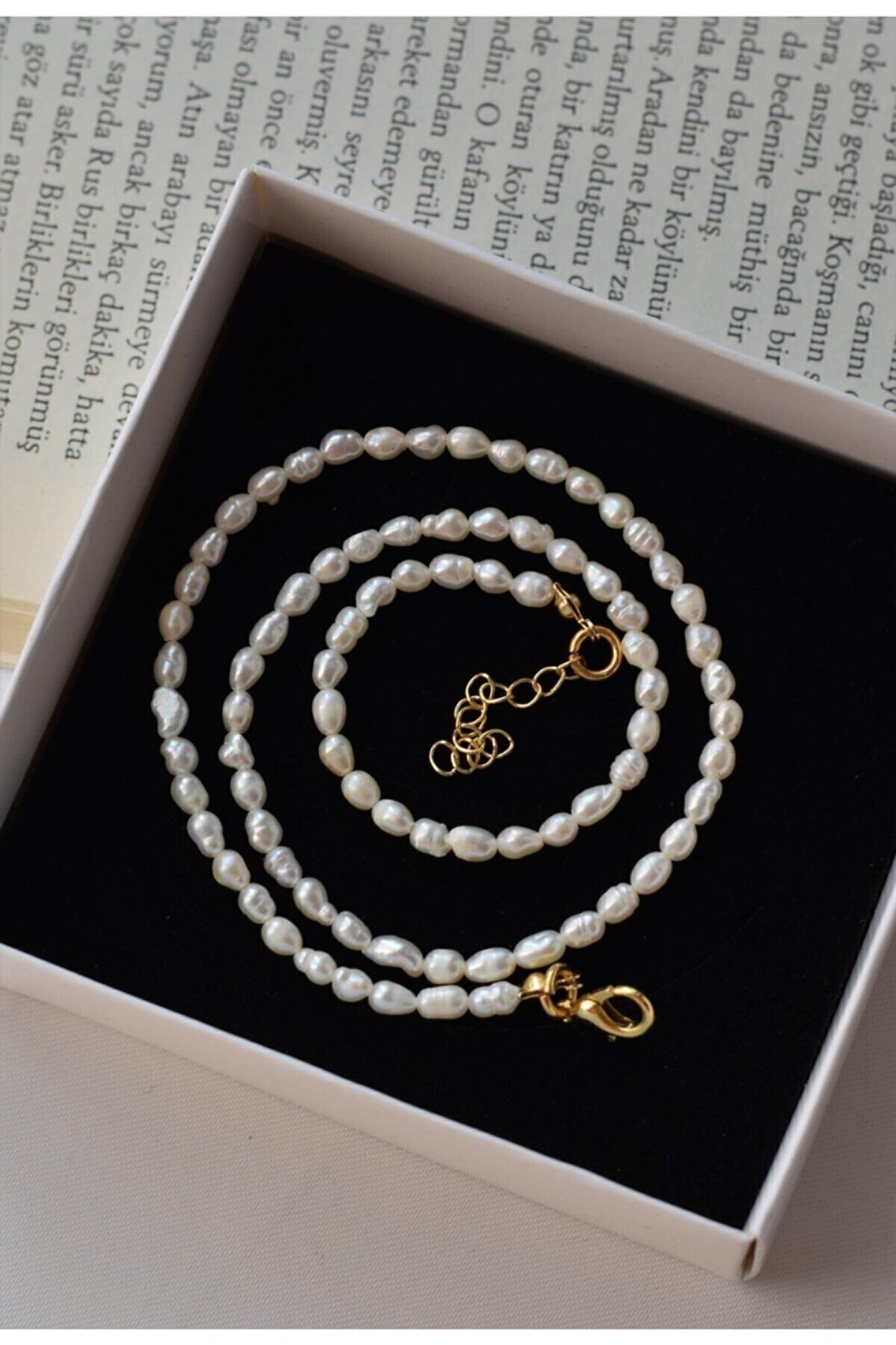 - Doğal arpa incisi kullanılarak tasarlanmış, zarif ve şık bir aksesuar; - İnci kolye, her türlü kıyafetle uyum sağlayarak günlük veya özel günlerdeki şıklığınızı tamamlar; - El işçiliği ile üretilmiş olup, her bir inci dikkatlice seçilerek kolyeye eklenmiştir; - Uzun ömürlü kullanım için kaliteli malzemelerden üretilmiştir ve dayanıklılığı ile ön plana çıkar;