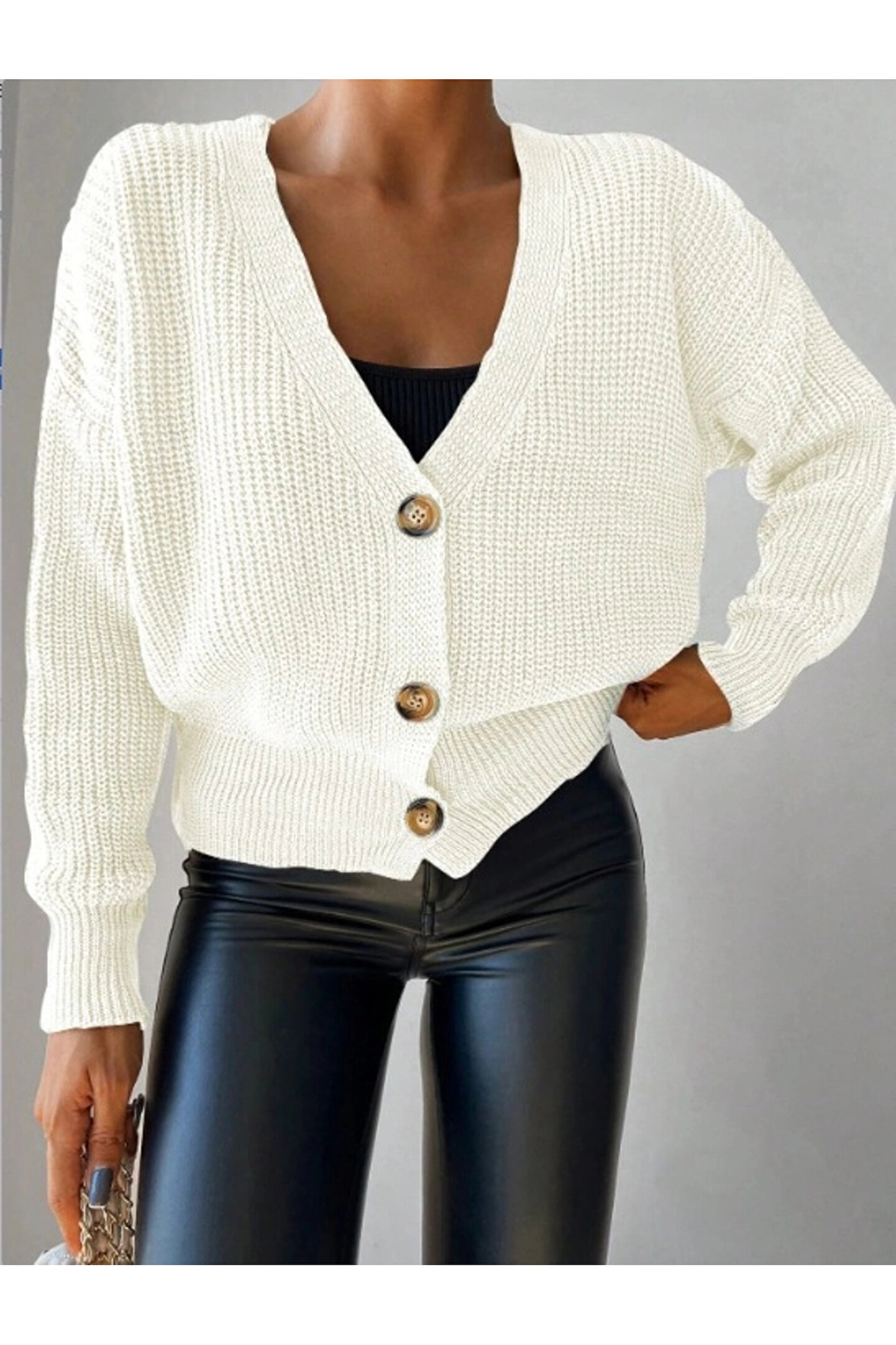 BEFAON Düğme Detay Triko Bluz