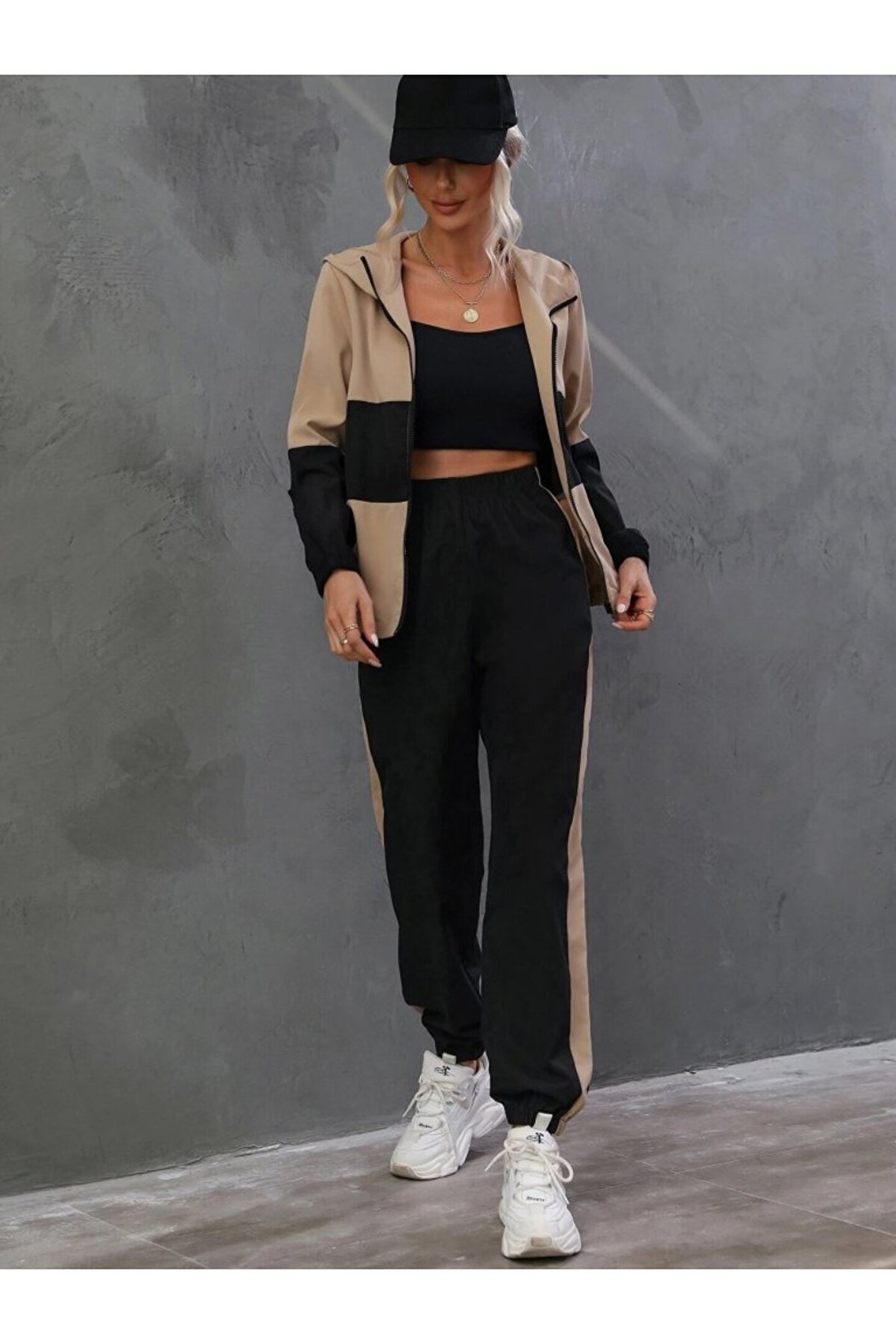 BEFAON EQURİ Kadın Uzun Kollu Kapşonlu önden Fermuarlı Viskon Iki Iplik Bluz Ve Pantolon Ikili Takım