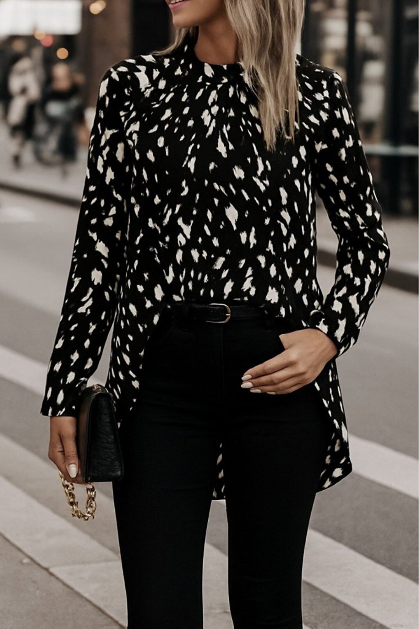 BEFAON EQURİ Kadın Uzun Kollu Yarı Balıkçı Yaka Desenli Dokuma Bluz