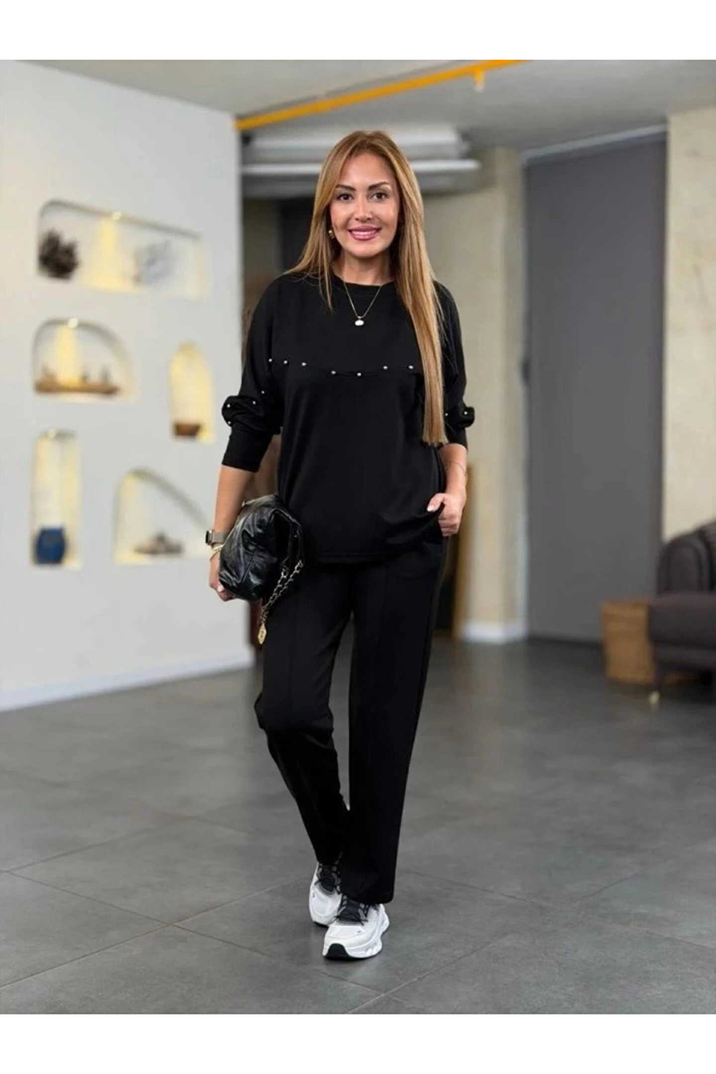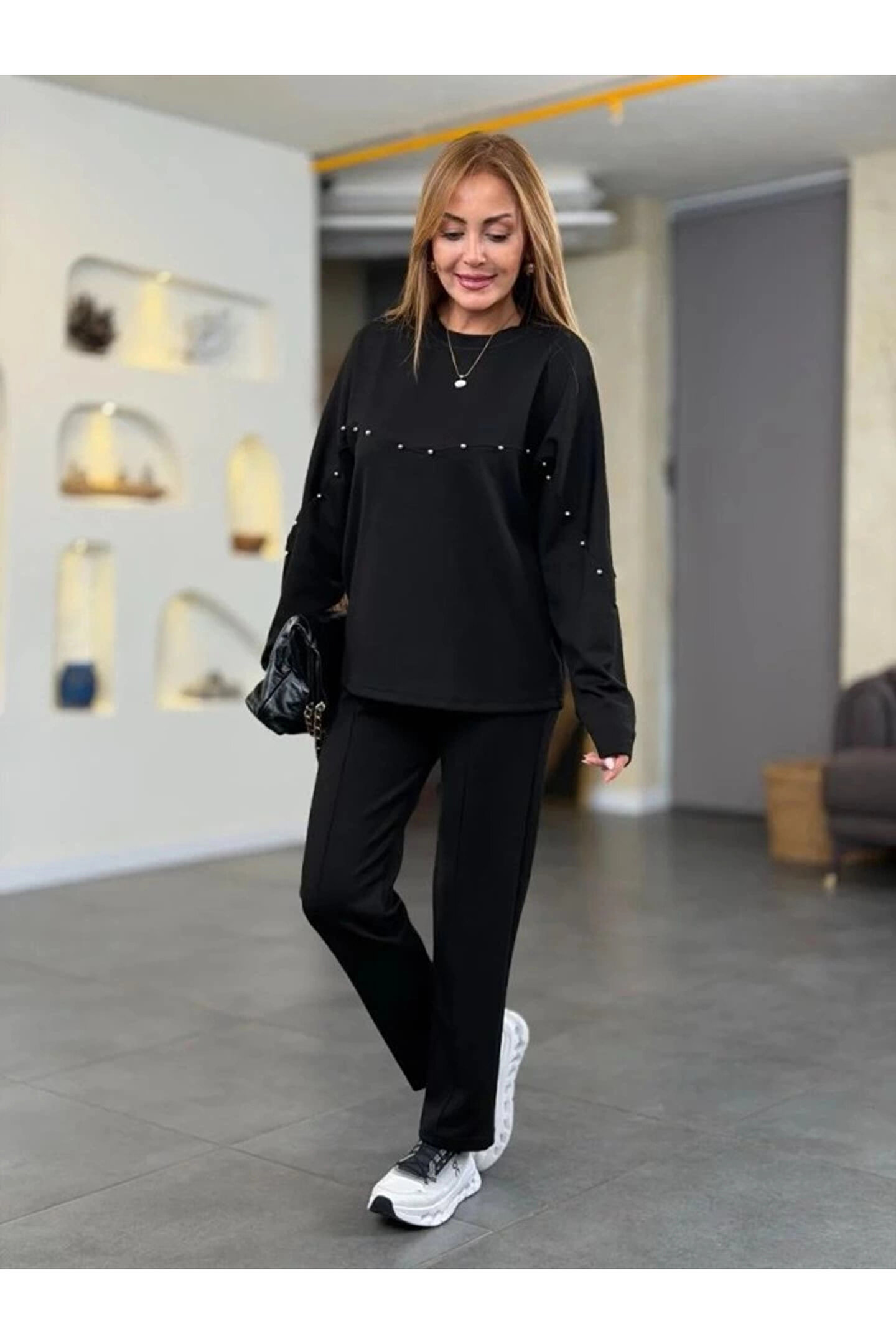 BEFAON Kadın Inci Detay Modal Kumaş Ikili Takım