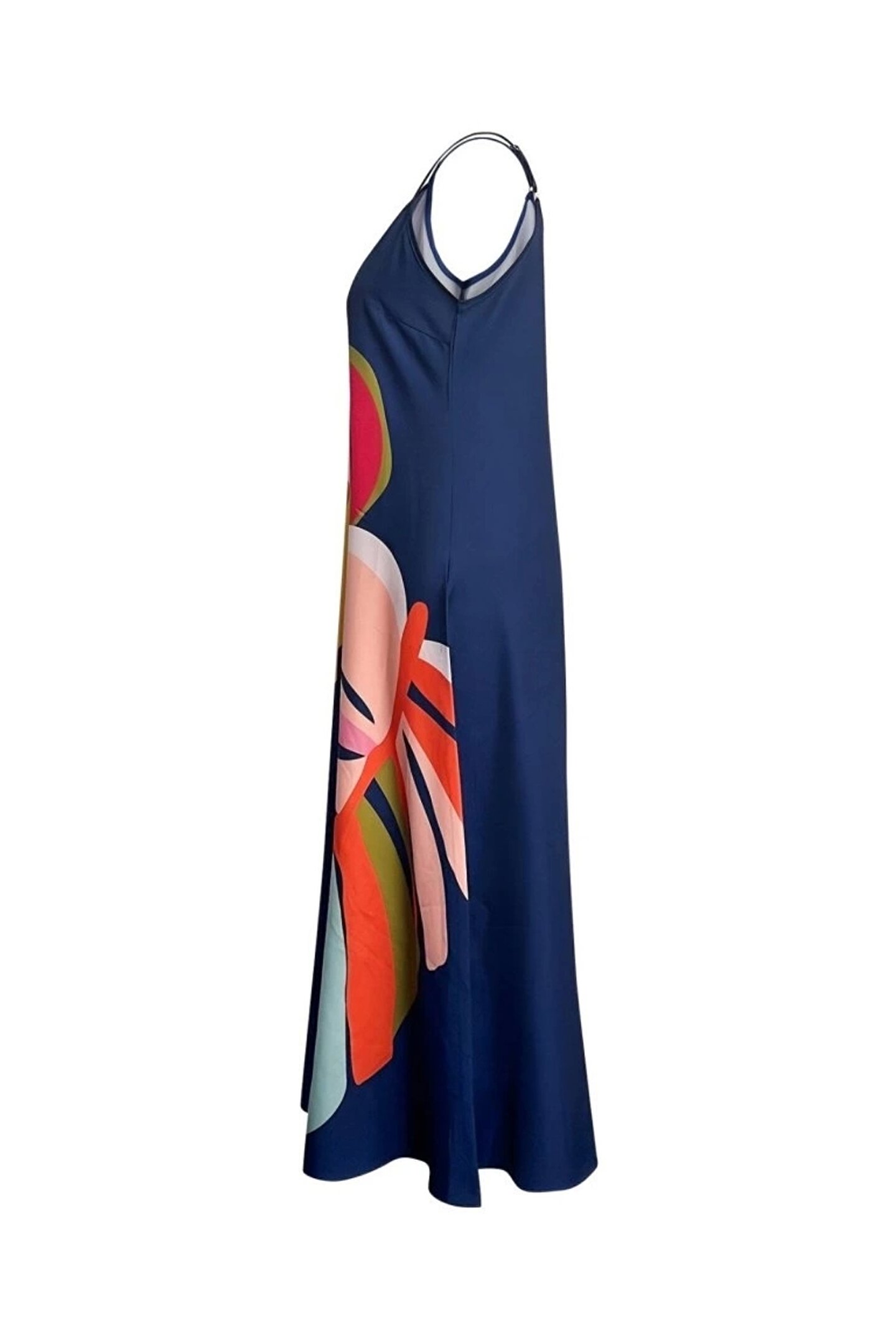 Kadın Ip Askılı V Yakalı Desenli Süprem Maxi Elbise