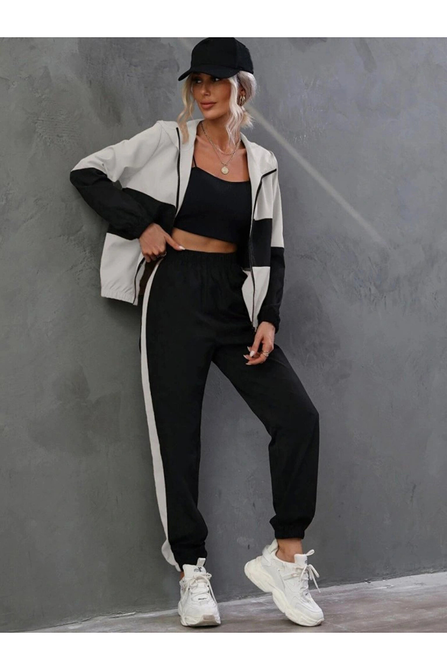 Kadın Uzun Kollu Kapşonlu önden Fermuarlı Viskon Iki Iplik Bluz Ve Pantolon Ikili Takım