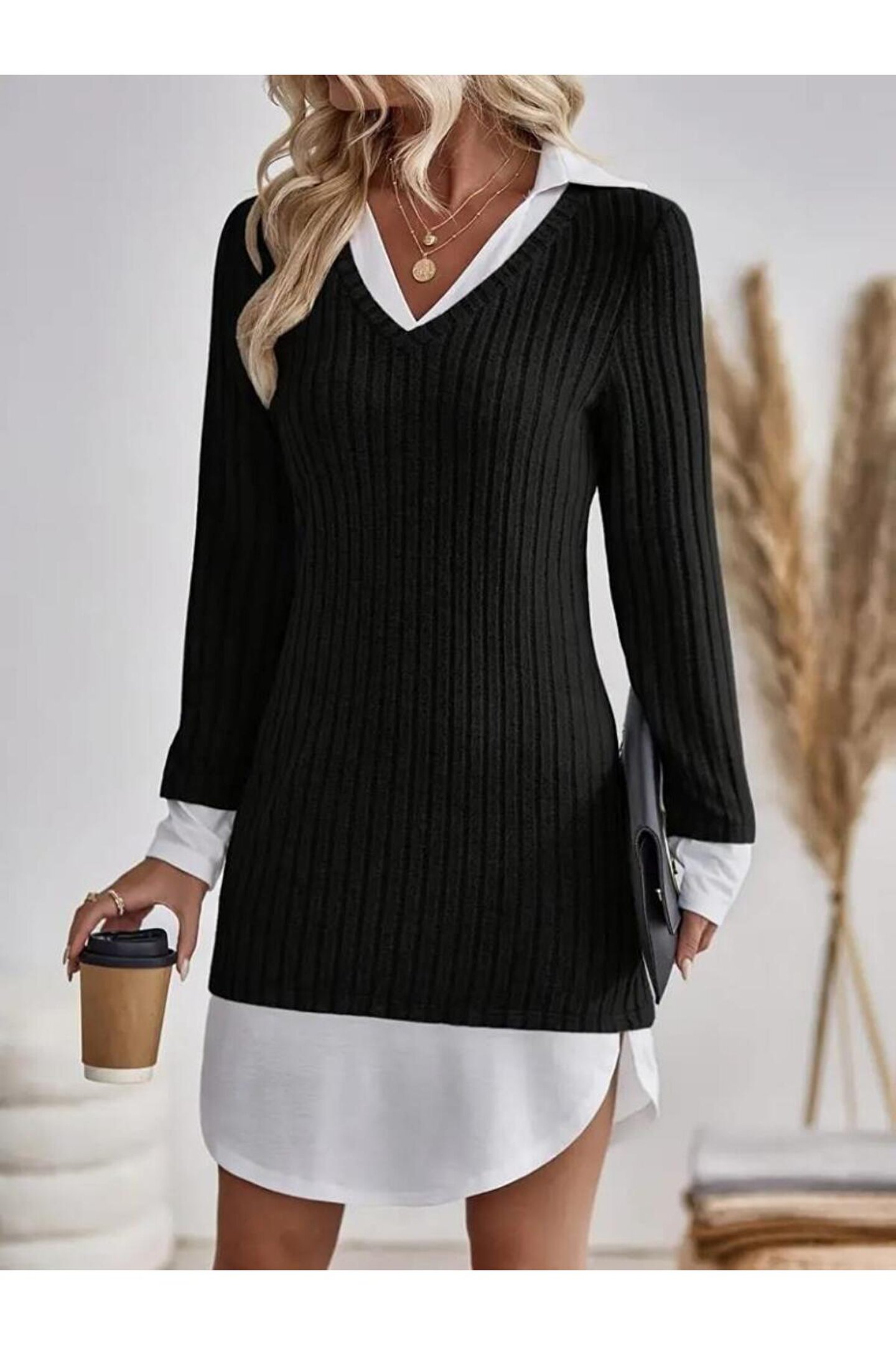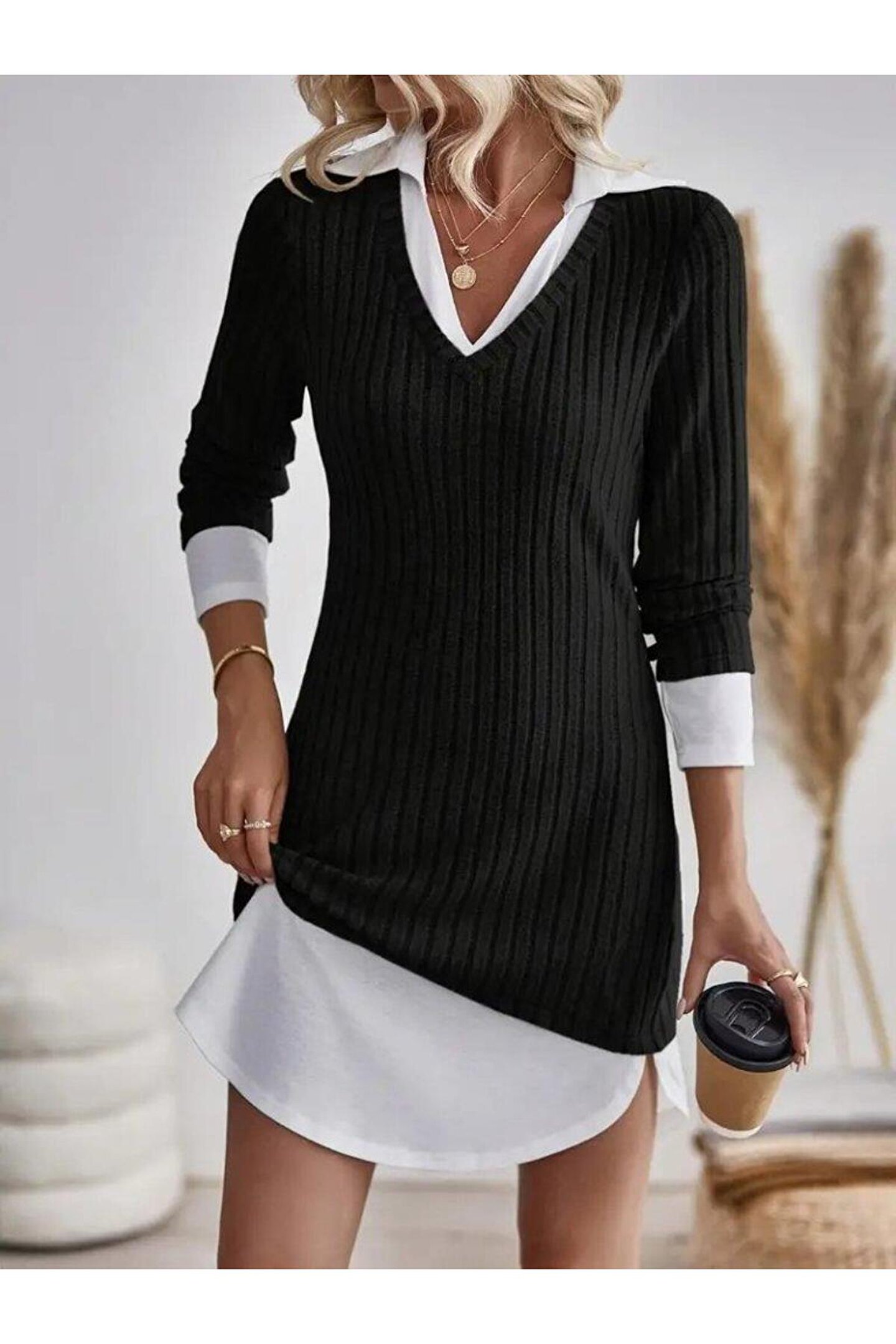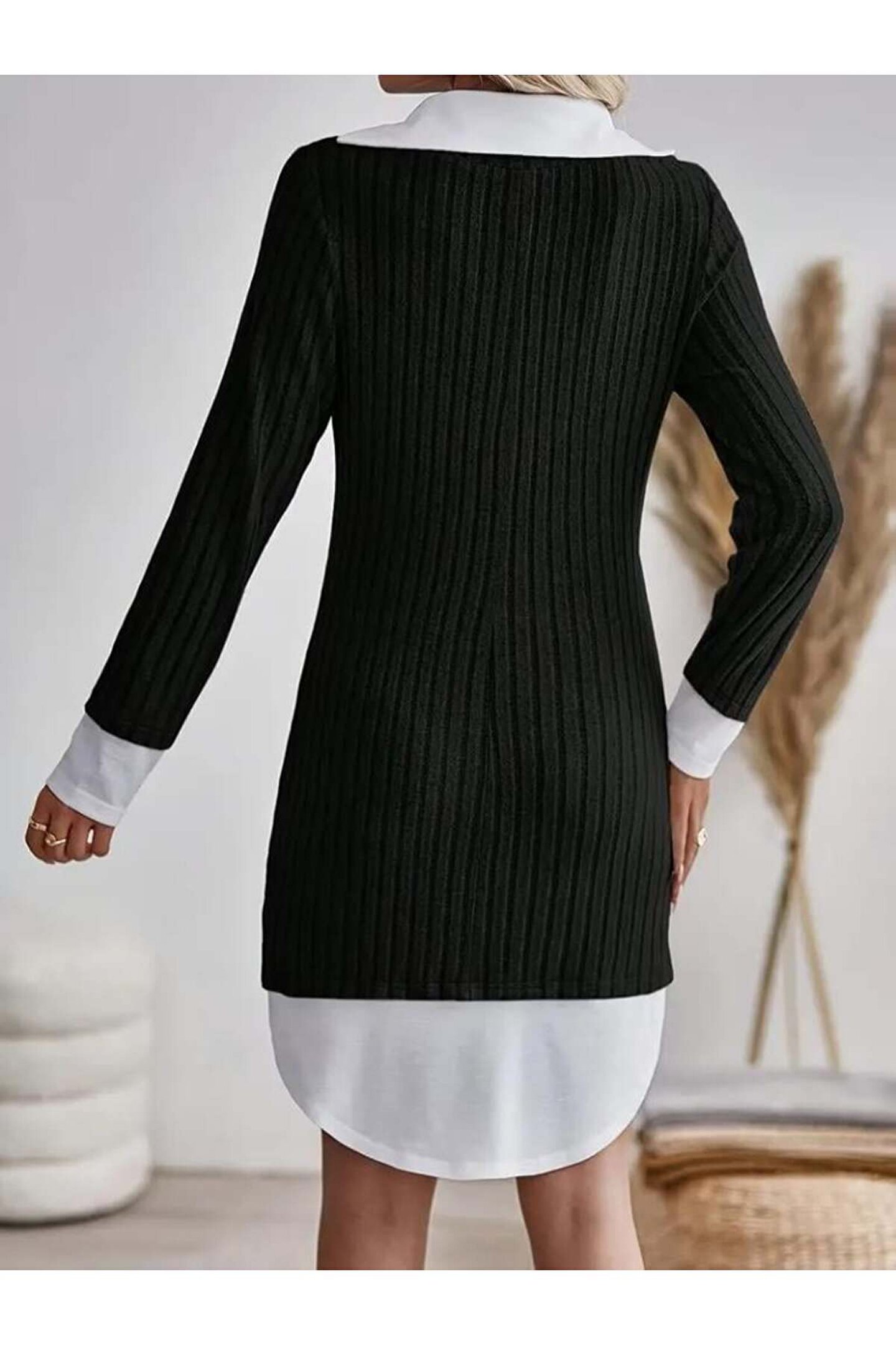 BEFAON Kadın Uzun Kollu Yakalı şardonlu Kaşkorse Dokuma Detaylı Elbise