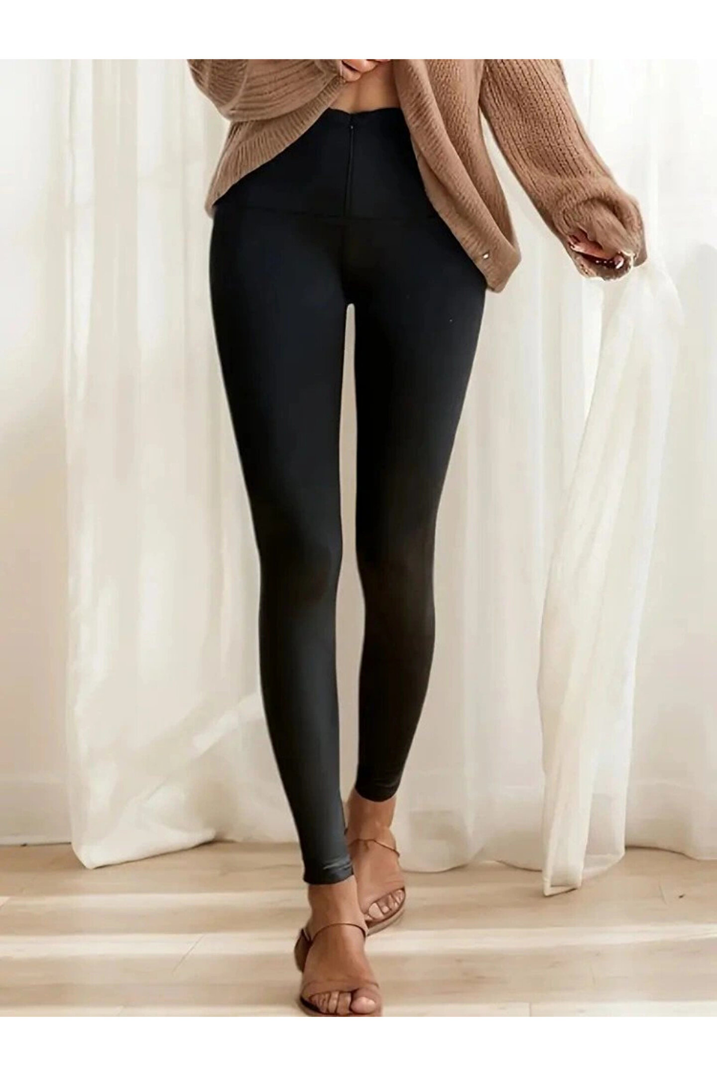 BEFAON Kadın Yüksek Bel önden Fermuarlı Dalgıç Tayt