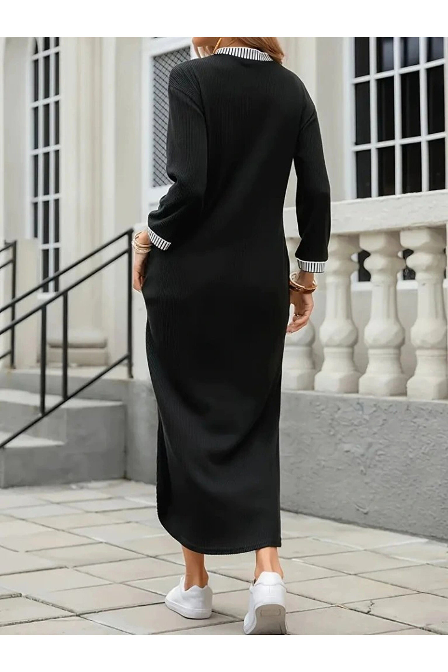BEFAON MDB Kadın Uzun Kollu V Yakalı Yanlardan Yırtmaçlı Uzun Viskon Iki Iplik Elbise