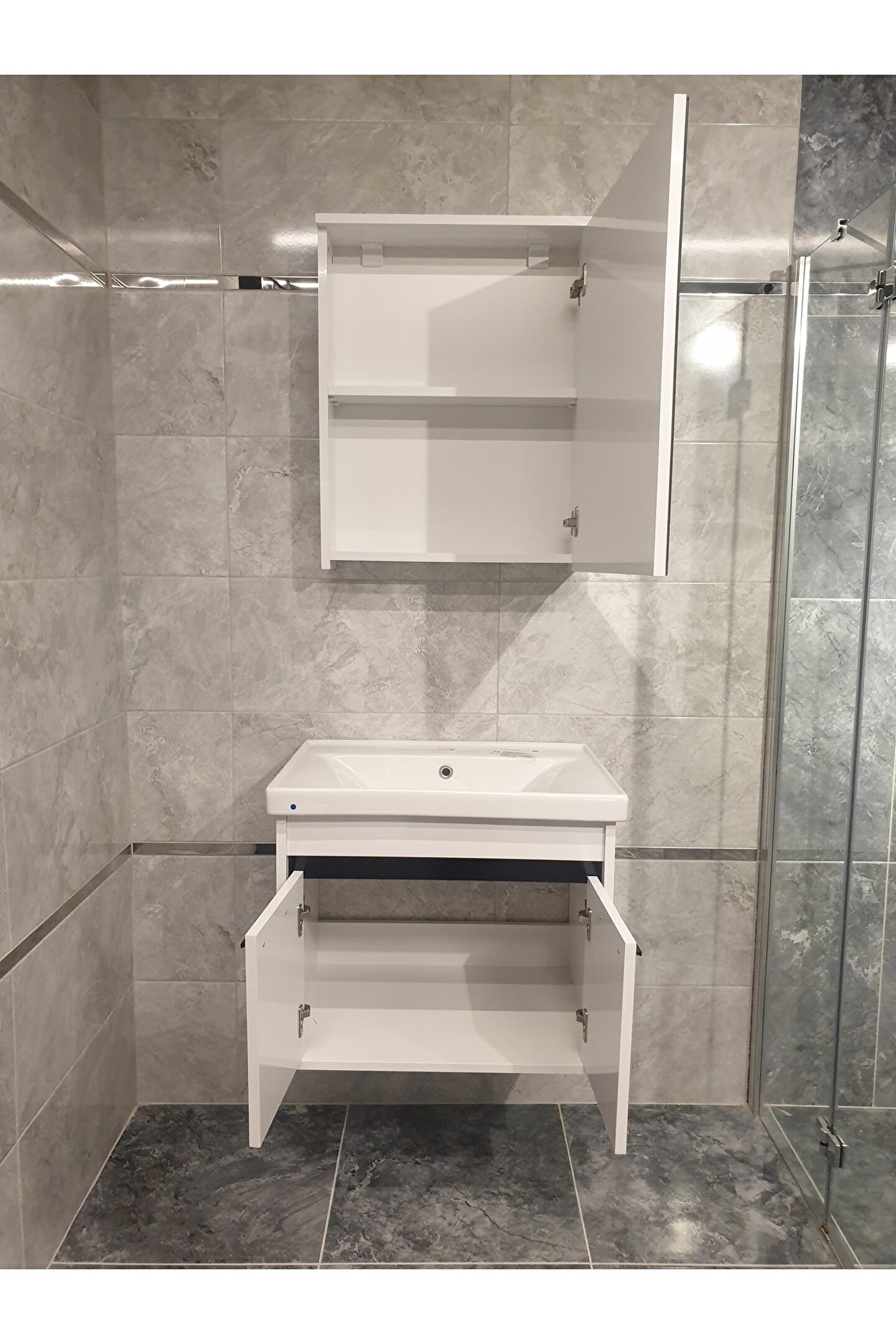 Aynalı tasarımı sayesinde hem kullanışlı hem de şık bir banyo deneyimi sunar; Set halinde gelen bu banyo dolap takımı, banyonuzda ihtiyacınız olan tüm parçaları tek bir pakette toplar;