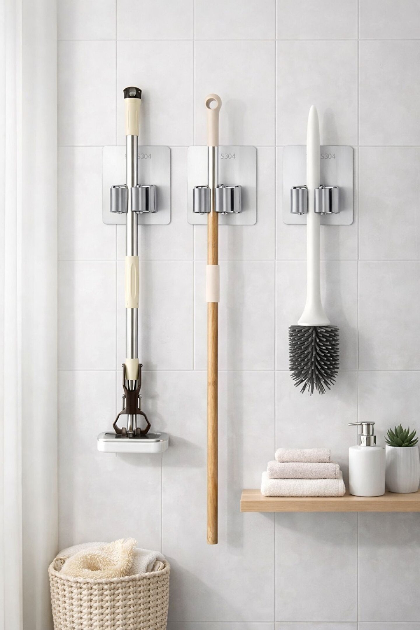 Tanım : Süpürge-Paspas Tutucu Maksimum Yük : 18kg Malzeme : 304 Paslanmaz Çelik Güçlü yük taşıyan, su geçirmez ve neme dayanıklı tasarım Kolay kurulum Pürüzsüz ve kuru bir yüzeye yapıştırın.; Klipsli Ağırlık : 45.39 Gr.; Ürün Ölçüleri : Yaklaşık 60 x 70 Mm Renk : Gümüş Sertifikalar : CE Belgeli Adet : 1 Model : BLV-23653 Paket İçeriği 1 x BLV-26353 Duvara Monte Süpürge-Paspas Tutucu 1 x Duvar Sabitleme Gönyesi 1 x Yapıştırıcı 1 x Çıkarma (Çince)