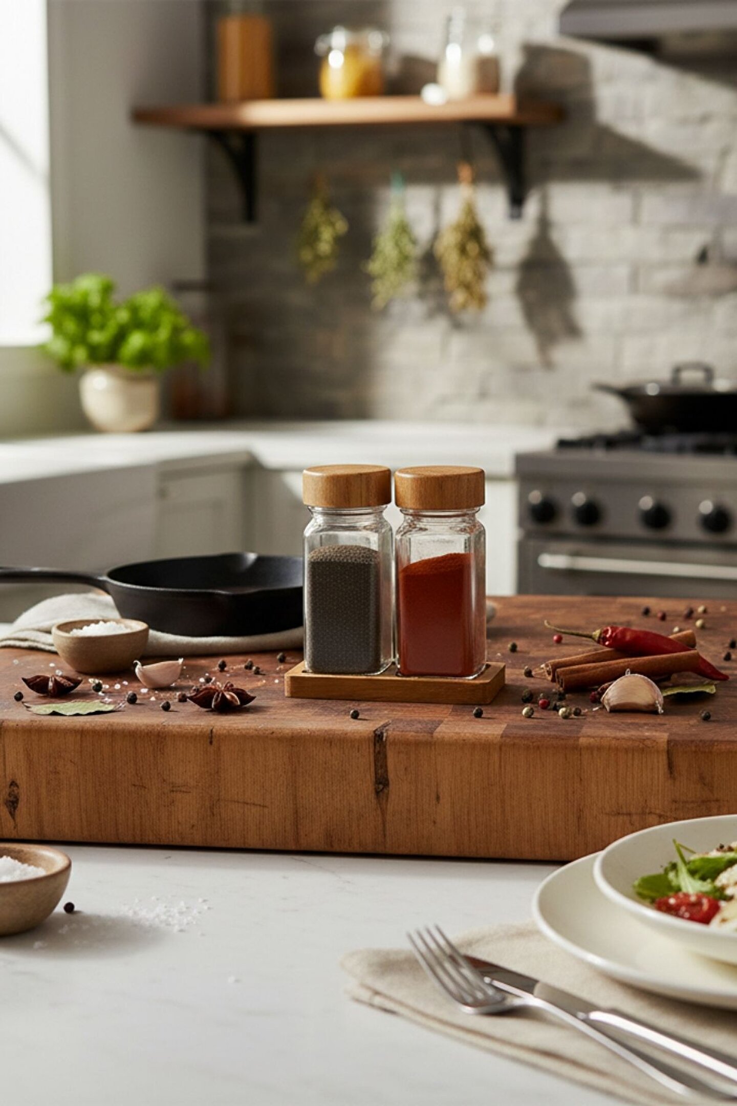 Hava Almaz Vakumlu Kapaklar: Bambu kapakların iç kısmındaki silikon conta sayesinde baharatlarınız nemlenmez, aromasını ve tazeliğini uzun süre korur.