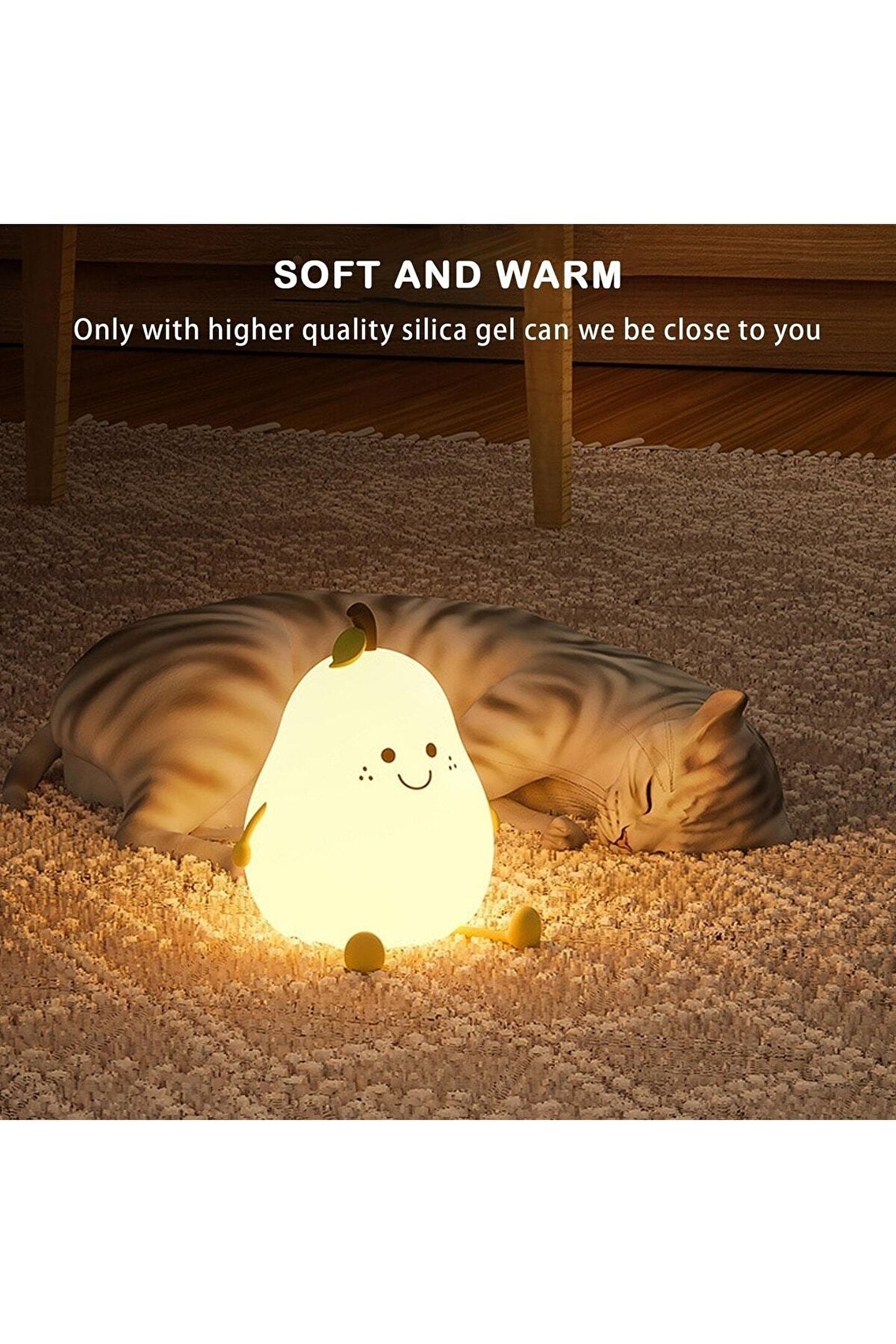 Armut Gece Lambası USB Şarjı, modern bir tasarımı rahatlık ve pratiklikle birleştirir.; Bu şık gece lambası, Masa Lambası veya gece lambası olarak kullanılabilen ayarlanabilir bir LED ışığa sahiptir ve size her durum için mükemmel miktarda parlaklık sağlar.; Aynı zamanda şarj edilebilir, böylece kablolar hakkında endişelenmenize gerek kalmadan masanızda tutabilirsiniz.; Herhangi bir odada bu çekici ve kullanışlı lambanın tadını çıkarın! Yatma zamanını daha konforlu hale getirmek için mükemmel tasarlanmış lamba, sıcak ve rahat bir parlaklık sağlar.; ; Çok yönlü aydınlatma: loş ışıktan parlak ışığa ayarlanabilir parlaklık ayarları; renk sıcaklığı yumuşak sarıdan beyaza değişir.; ; Gece lambasının kolayca şarj edilmesi için USB şarj portuna sahip dahili şarj edilebilir pil.; ; Yumuşak dokunuşlu açma / kapama düğmesi - anahtar için karanlıkta dolaşmanıza gerek yoktur.; ; Kompakt boyut ve modern tasarım, herhangi bir yatak odası veya oturma odası dekoruna kolayca sığar.; ; Armut Gece Işığı'nı her zaman açık tutmak için hem AC adaptörünü hem de USB kablosu bağlantısını destekleyin.; ; Göz dostu LED ampul, görme sağlığı için güvenli olan titreşimsiz aydınlatma sağlar.; ; Eşsiz şekli hoş bir atmosfer yaratır ve her odaya güzellik katar.; ; Hareket algılandığında otomatik olarak AÇIK / KAPALI duruma getirin.; ; Pil ömrü göstergesi, gece lambasında ne kadar güç kaldığını bilmenizi sağlar.; ; Yüksek kaliteli PP + ABS malzemeden yapılmıştır, mükemmel ısı dağılımı performansı ile daha uzun ömür sağlar.; ; Aralarından seçim yapabileceğiniz farklı renk ve boyutlarda mevcuttur.;
