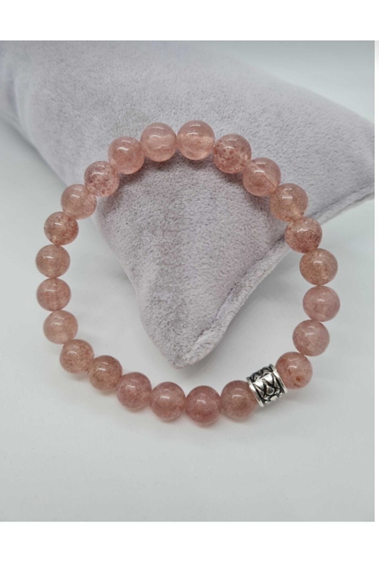 Doğal taş kullanımı sayesinde her bileklik benzersiz ve otantik bir görünüm sunar; Gül kuvarsın zarif küre kesimi, bilekliğe sofistike bir dokunuş katar; Doğal taş bileklik, hem günlük kullanım hem de özel günler için ideal bir aksesuar seçeneği oluşturur; Doğal taşın sıcaklığını ve enerjisini yansıtan bu bileklik, şıklığınızı tamamlar;