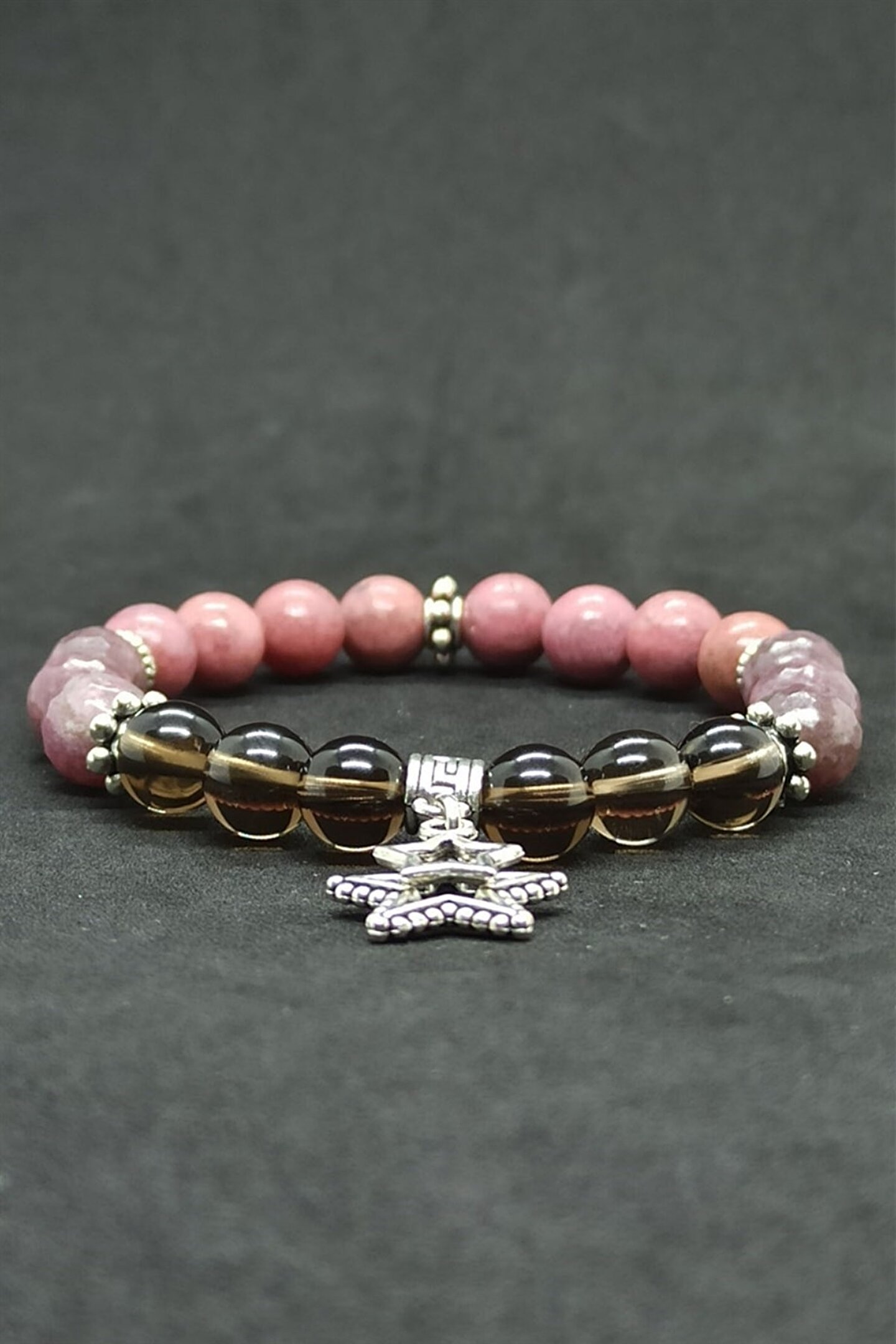 Dumanlı Kuvars Lepidolit Rodonit Doğal Taş Kadın Bileklik Dumanlı Kuvras: İyileştirici taşlar arasında yer alır. ; Sinir sistemini güçlendirir. ; Kişiye sakinlik verir. ; Kolay iletişim kurmanıza yardımcı olur. ; Odaklanmaya yardımcı olur. ; Tiroid bezini korur ve iyileştirici özelliği vardır. ; Radyasyona karşı koruyucudur. ; Sinirsel gerginliğe ve panik atak hastalığına iyi gelir. ; Lepidolit taşı: kişiye rahatlama ve huzur veren çok güçlü bir taştır. ; Bedeni dinlendirir. ; Güven ve kabullenme duygusunu geliştirir. ; Elle tutulduğunda kişiyi sakinleştirir. ; Endişe ve kuruntuyu giderir, mutluluk verir. ; Umutsuzluk ve bunalımları hafifletir. ; İyimserlik ve sabır verir. ; Bağımlılıkladan kurtulmaya yardımcıdır. ; Akıl,Zihin,Aşk,Güç sembolüdür ve kullananın bu özellikleri edinmesine yardım eder. ; Rodonit Taşı: ruhsal enerjiye sahiptir. ; Uyum ve huzur verir. ; Sorunlarla başa çıkmanıza yardımcı olur. ; Günlük yaşamda başarılı olmaya yardımcı olur. ; Ruhsal,zihinsel ve fiziksel canlılığınızı arttırır. ; Sınav öncesi stresi ortadan kaldırır.Zihin açıklığı verir. ; Öğrenme yeteneğini arttırır. ; Korkuyu azaltmaya yardımcı olur. ; Neşe,keyif,memnuniyet,aşk ve sevgi sembolüdür,kullananın bu özellikleri kazanmasına yardım eder. ; Boğaz ve gırtlak iltihaplarının tedavisine yardım eder. ; Anksiyete ve depresyon tedavisinde destek amaçlı kullanılmaktadır.;