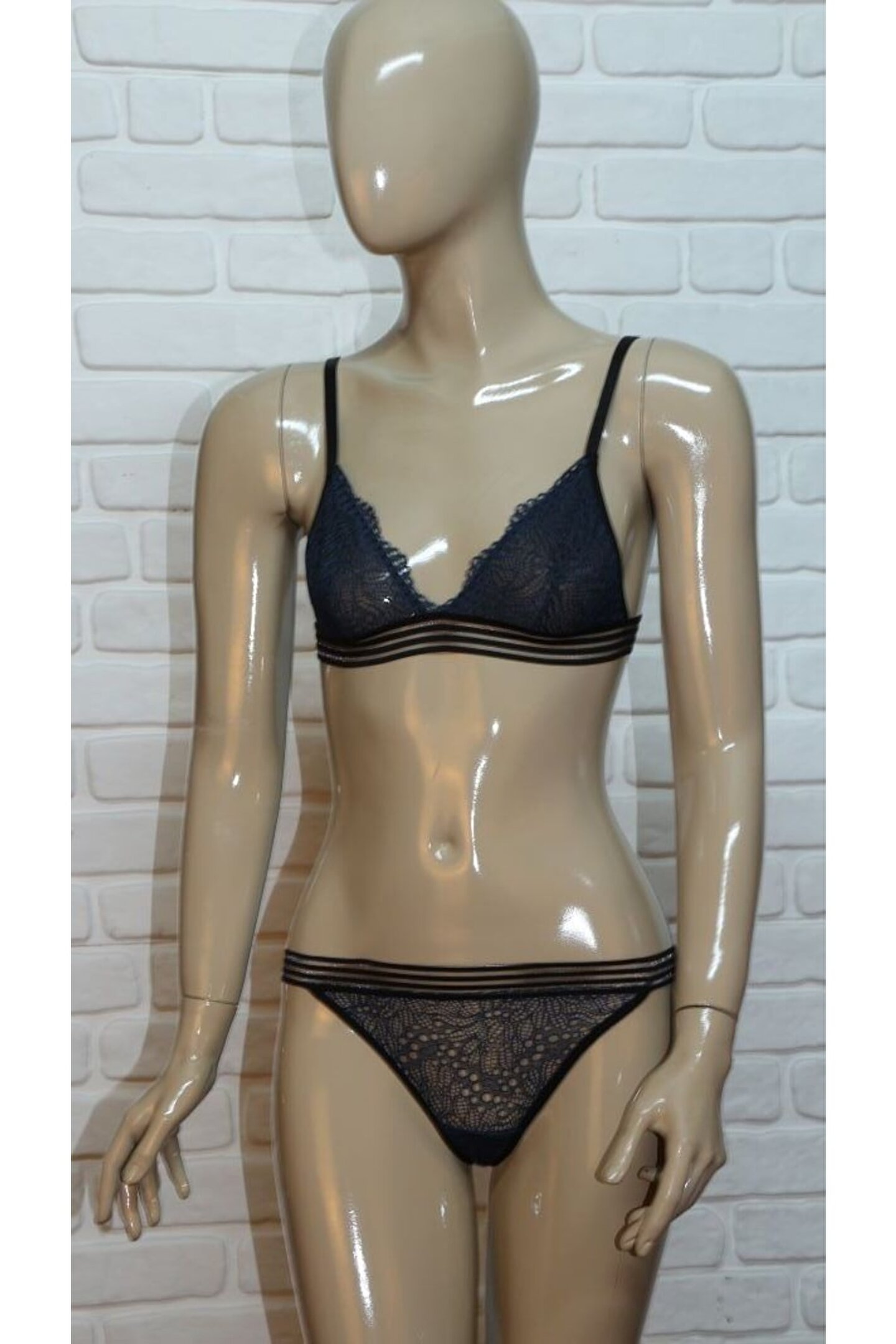 Kadın Şerit Detaylı Lastikli Balensiz Dantel Fantazi Sütyen Külot Takım