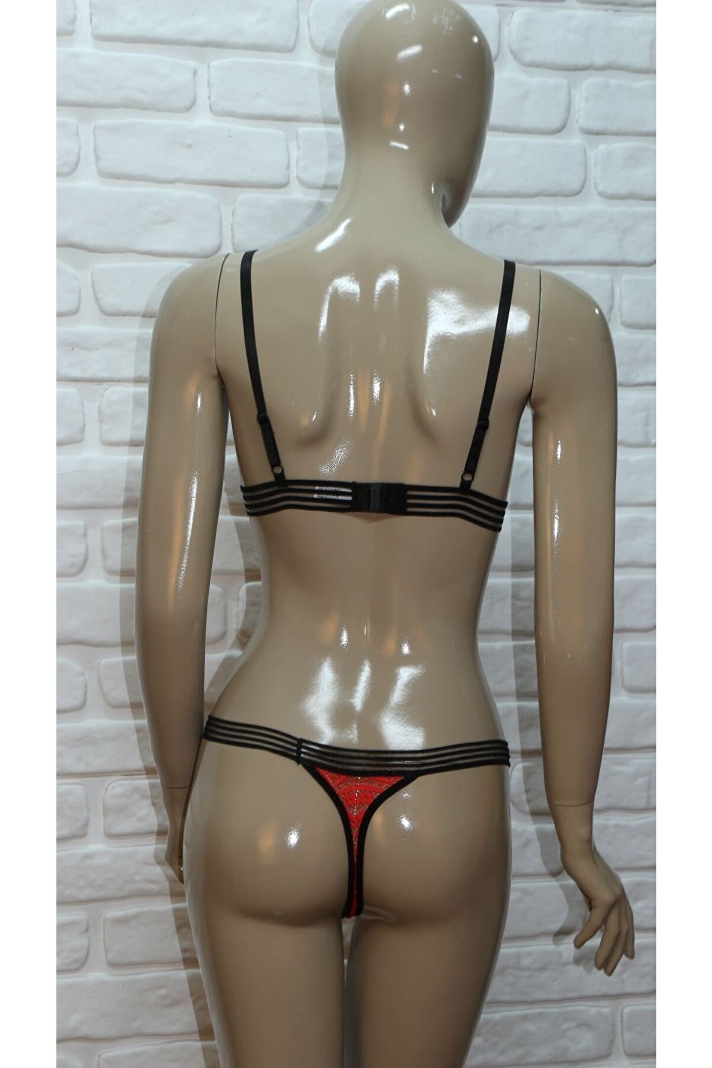 BESMOD Kadın Şerit Detaylı Lastikli Balensiz Dantel Fantazi Sütyen Külot Takım