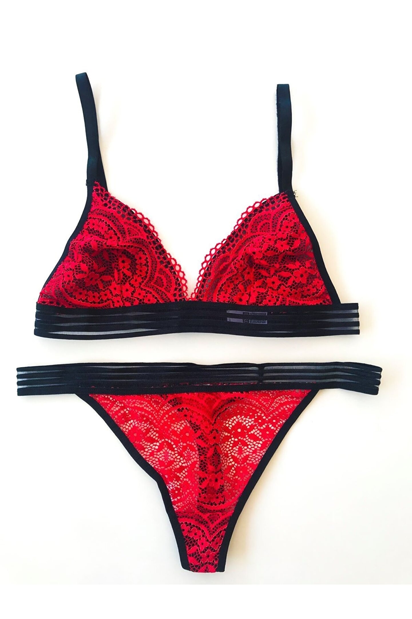 Kadın Şerit Detaylı Lastikli Balensiz Dantel Fantazi Sütyen Külot Takım