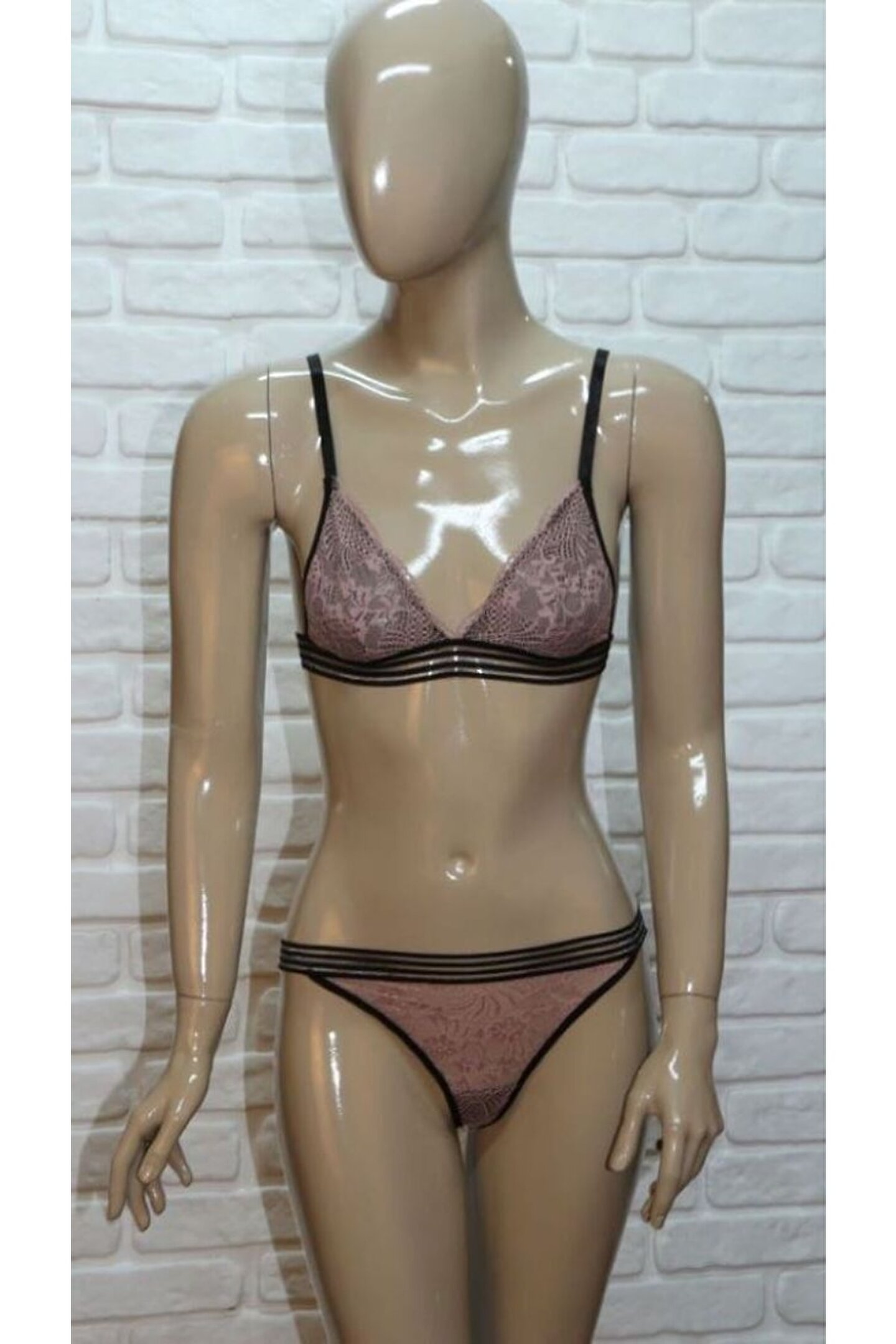 Kadın Şerit Detaylı Lastikli Balensiz Dantel Sütyen Külot Takım