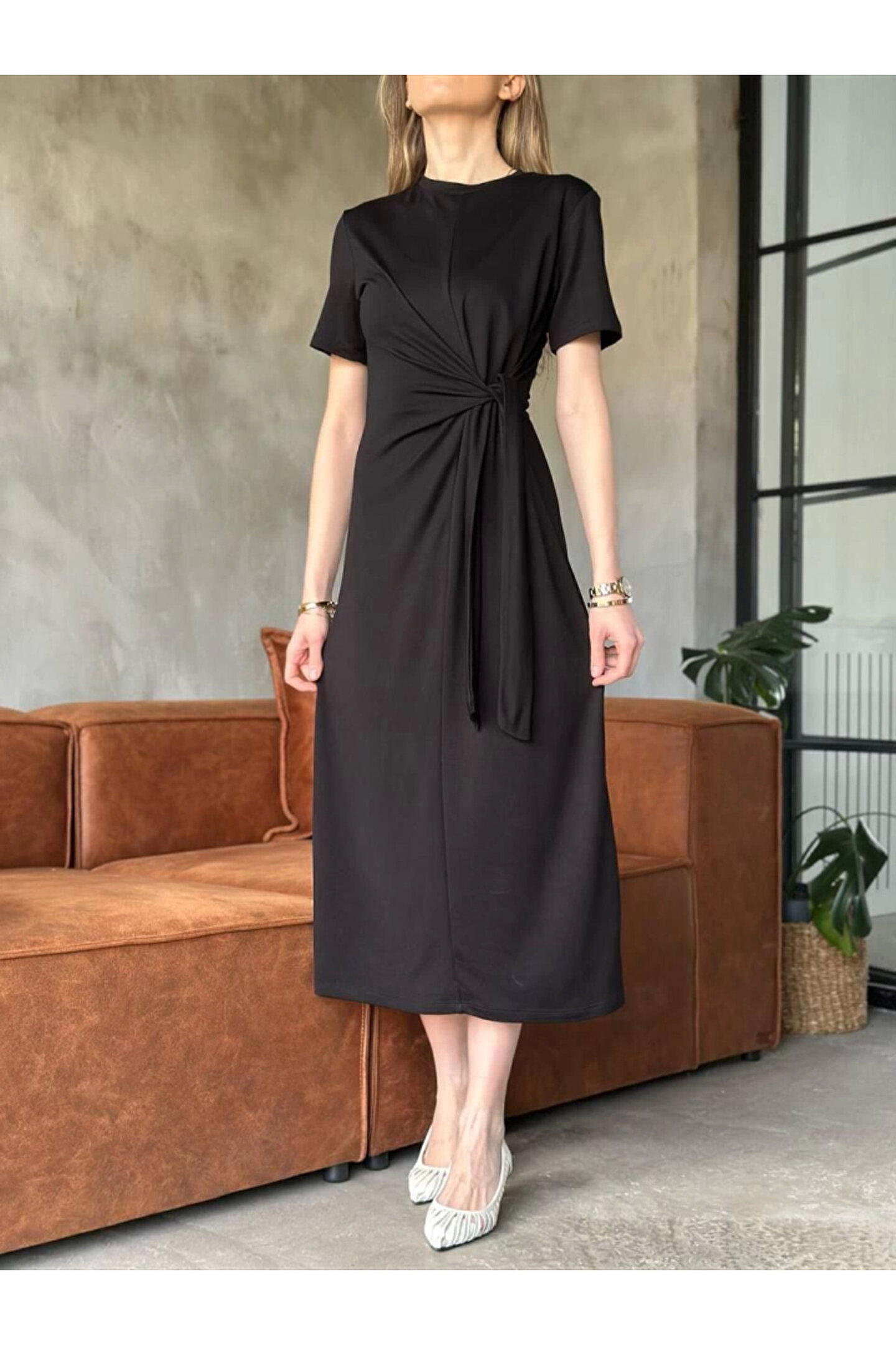 BETÜŞ WEAR Osy odal Yumuşak Dokulu KumaşYandan Bağlamalı Elbise iyah