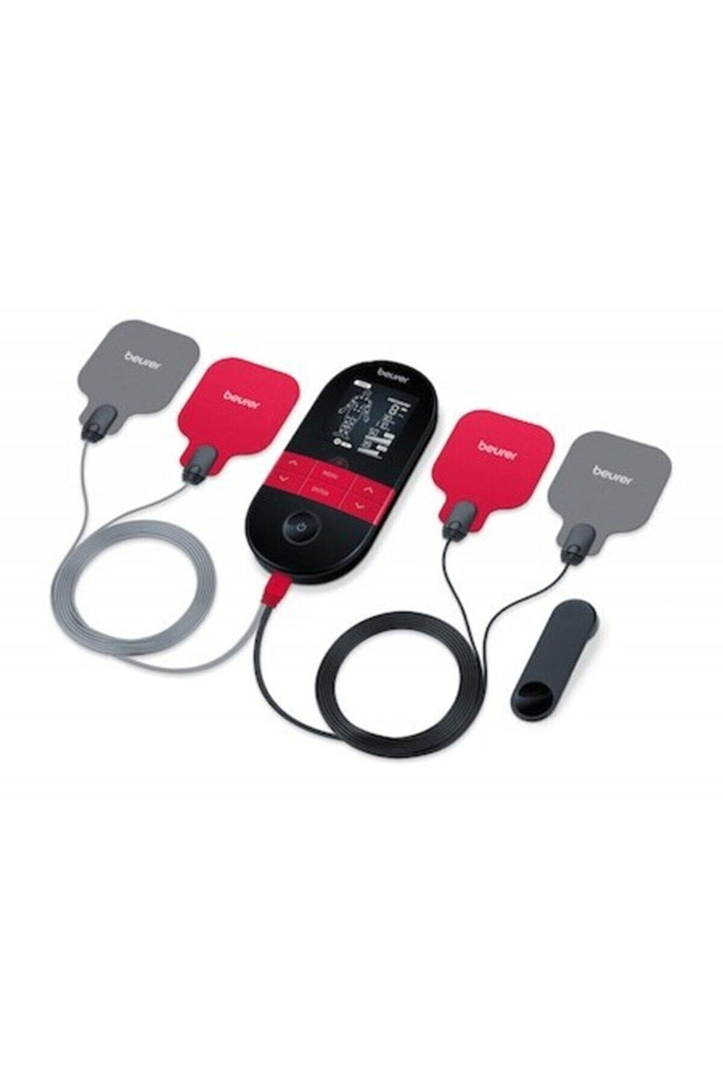 Beurer em 59 tens / ems masaj cihazı Ağrı terapisi (tens) Kas stimülasyonu (ems) Isı fonksiyonu Rahatlama ve masaj (ems) Elektrot konumlandırma göstergesi Yeniden şarj edilebilir pil 4 ad; Elektrot ve jel ped 4 ad; Jel ped (45x45 mm) dahil 2 ısı kademesi 3 kullanım seçeneği tens/ems+heat; Sadece ems/tens, sadece heat 2 ayrı ayarlanabilir kanal 64 önceden programlandırılmış uygulama 6 kişiselleştirilmiş program; Programlanabilir frekans, pals genişliği açılma/kapanma zamanı Yoğunluğu ayarlanabilir Geri sayım işlevli zamanlayıcı Güvenlik amaçlı kapanma Doktor's; Function Arka plan ışıklı ters lcd Şarj edilebilir pil (2000 mah) Usb şarj kablosu dahil;;