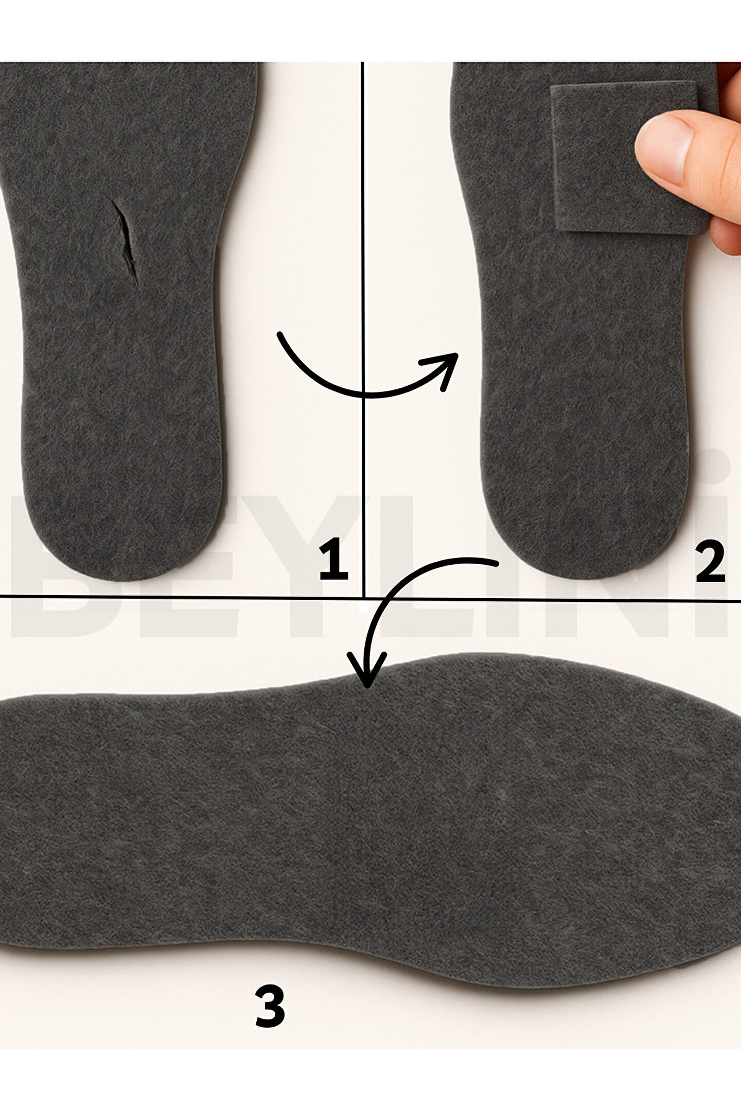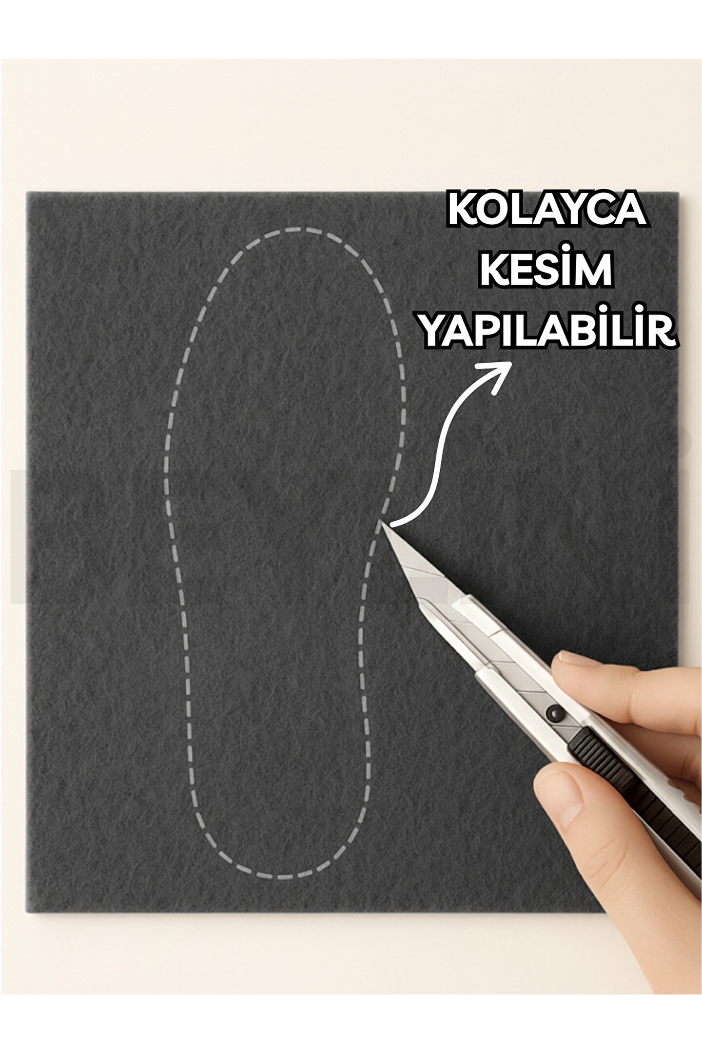 ESTETİK VE GİZLEYİCİ ÇÖZÜM Antrasit Keçe dokusu, özellikle ayakkabıların iç ve taban dokusuyla orijinal yapısıyla mükemmel bir uyum sağlar. Hasarlı bölgeye yapıştırıldığında, yırtığı veya deliği etkili bir şekilde gizleyerek neredeyse fark edilmez bir onarım sunar ve ayakkabınıza şık, kusursuz bir görünüm kazandırır.