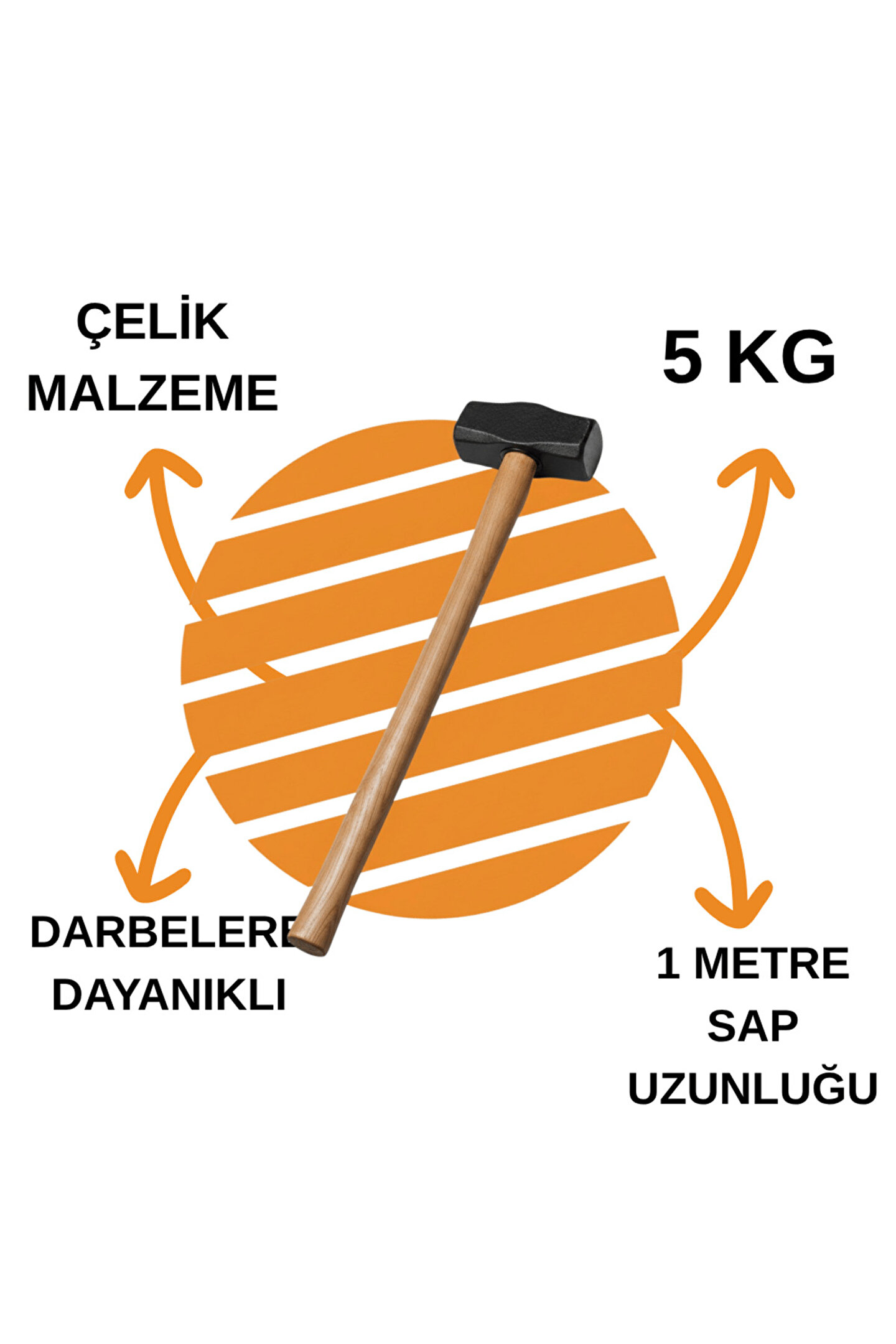 Dayanıklı: 5 KG ağırlığındaki bu balyoz başı, yüksek mukavemetli dövme çelikten üretilmiş olup ağır darbelere karşı maksimum direnç sağlar.; ; Çok Amaçlı: Beton, taş ve metal yüzeylerde güçlü kırma, yıkım ve şekil verme işlemleri için uygundur.; ; Profesyonel Kullanım: Ağır sanayi, büyük ölçekli inşaat projeleri, yol yapımı ve şantiye yıkım işlerinde üstün sunar.; ; Uyumlu: Standart ve kalınlaştırılmış balyoz saplarına uyumlu 3 cm çapında sap giriş bölümüyle sap değişimi kolay ve güvenlidir.; ; Güvenilir: Denge merkezi optimize edilmiştir; profesyonel işlerde kontrollü güç aktarımı sağlar ve iş güvenliğini artırır.; ; Uzun Ömürlü: Korozyona dayanıklı yüzey kaplaması ve güçlendirilmiş yapı sayesinde uzun yıllar performansını korur.; ; Endüstriyel Standart: Yoğun ve profesyonel kullanım için geliştirilmiş ağır hizmet tipi balyoz başı, endüstriyel kalite güvencesiyle üretilmiştir.