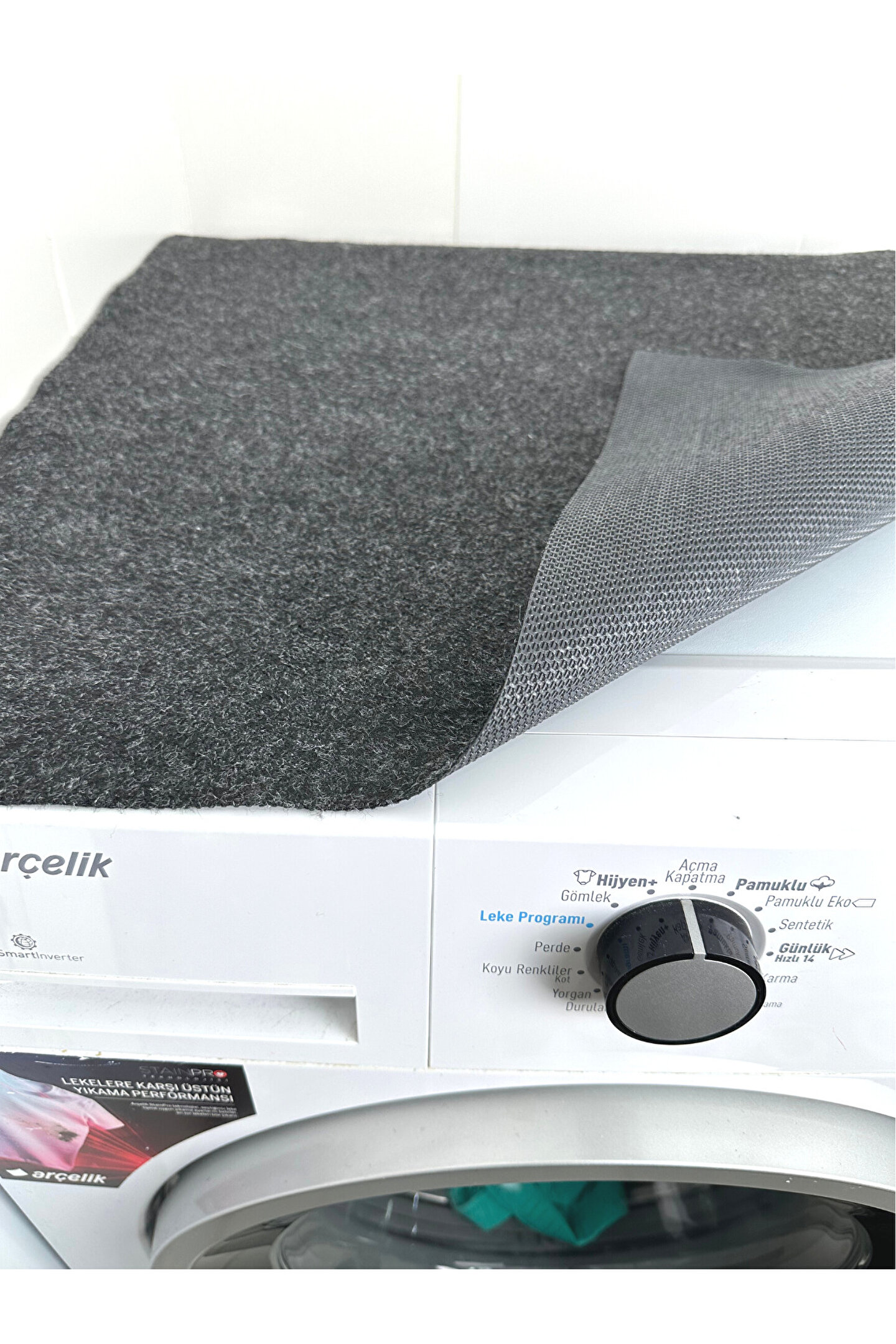 - Yüksek kaliteli polyester malzemeden üretilmiş, uzun ömürlü kullanım sunar.; - Kaymaz taban özelliği sayesinde çamaşır makinesinin kaymasını önler ve güvenli bir kullanım sağlar.; - Sıvı geçirmez yapıdadır, temizliği kolaydır.; - Antrasit rengiyle modern ve şık bir görünüm sunarken ev dekorasyonunuza uyum sağlar.; - Kolayca yıkanabilir olması pratiklik kazandırarak sık yıkama gerektiren alanlarda bile konforlu bir deneyim yaşatır.
