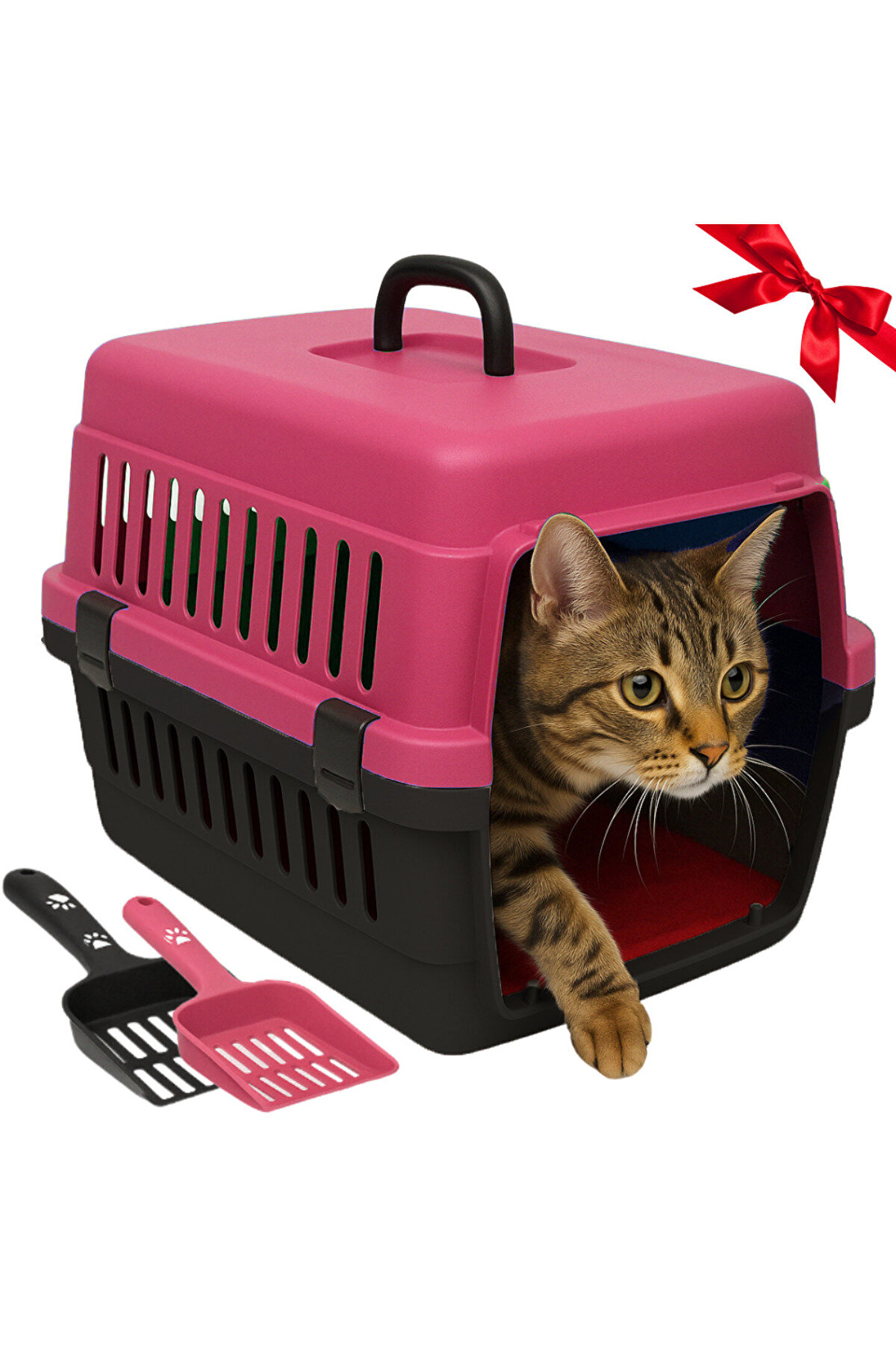 Şeffaf Tekerlekli Kedi Köpek Taşıma Valizi Çekçekli Büyük Model Siyah Kırmızı Minderli
