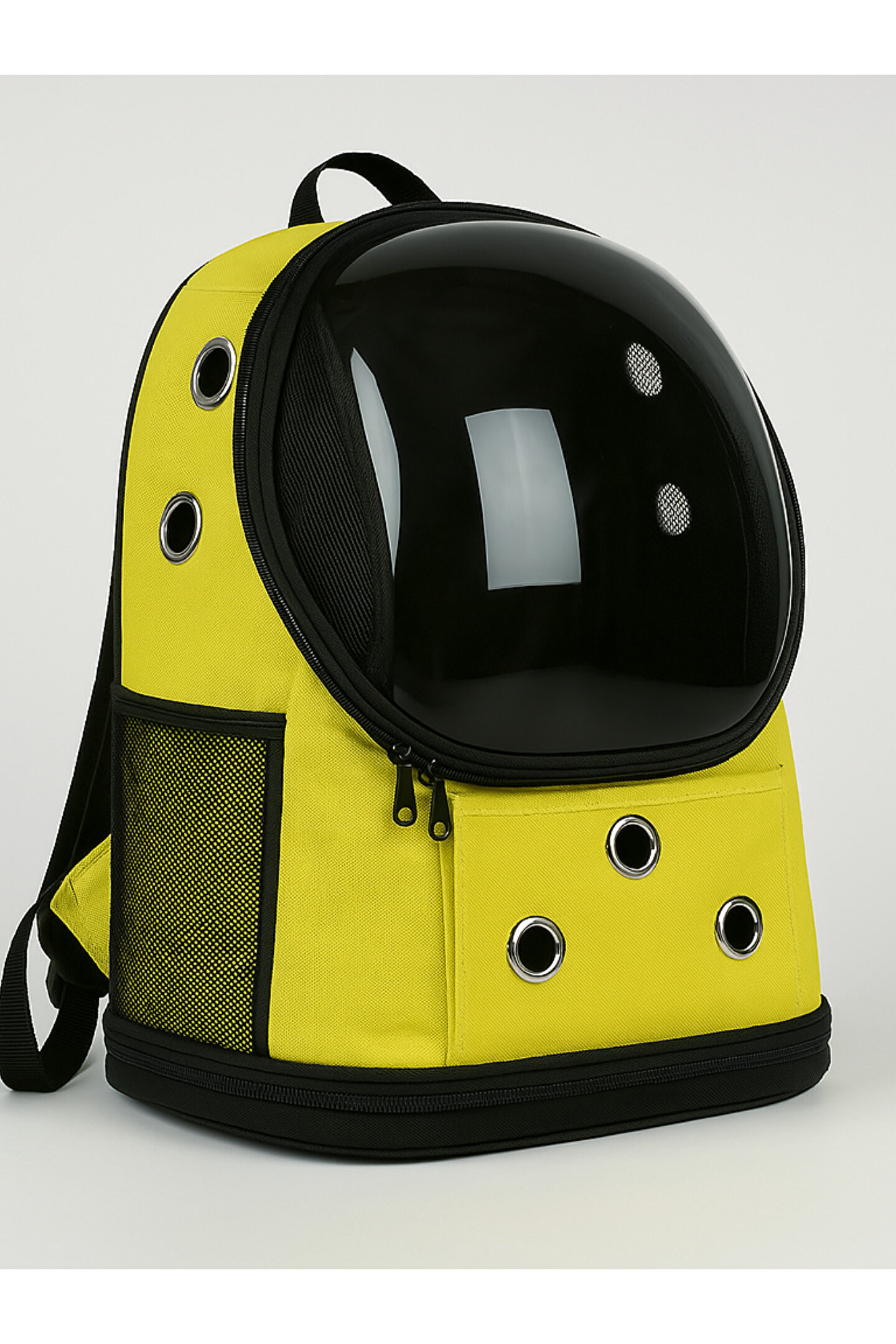 Yıkanabilir Şeffaf Kedi ve Köpek Taşıma Çantası 7 Hava Kanalı Fileli Ceplerle Pratik Kullanım Sarı