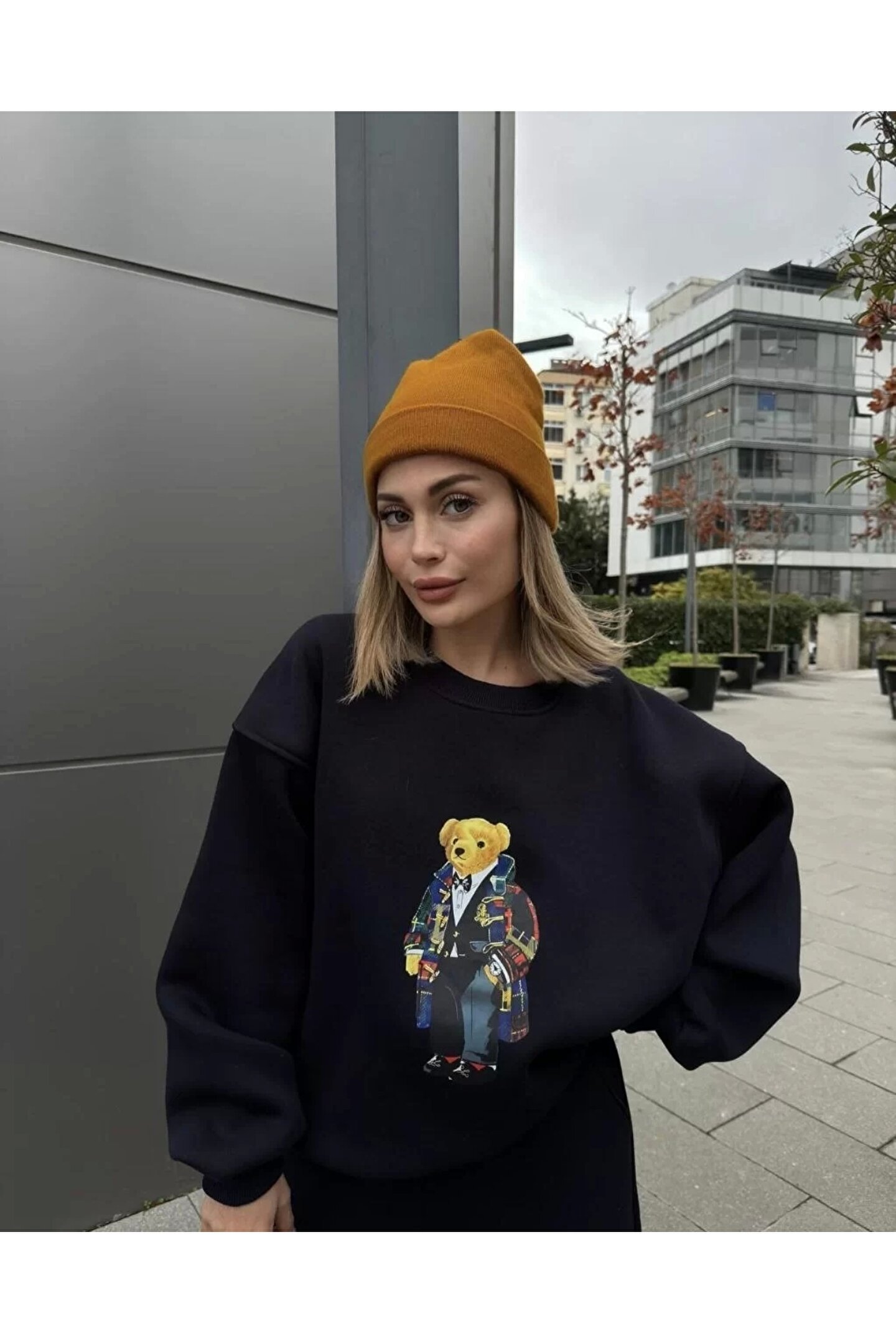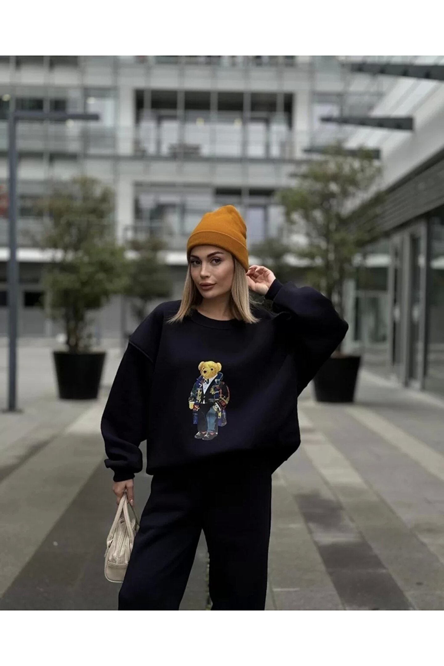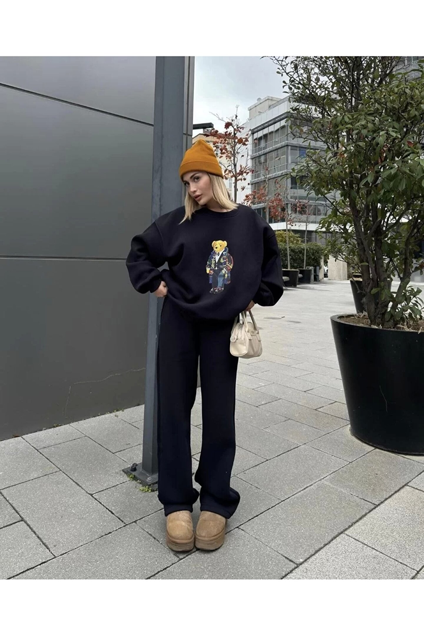 Bijuterria Bisiklet Yaka Üç İplik Sweat Takım - Siyah