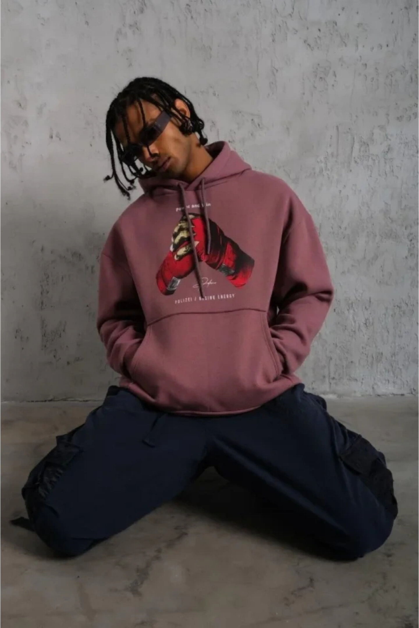 Erkek Eldiven Baskılı Kapüşonlu Sweat - Gül Kurusu