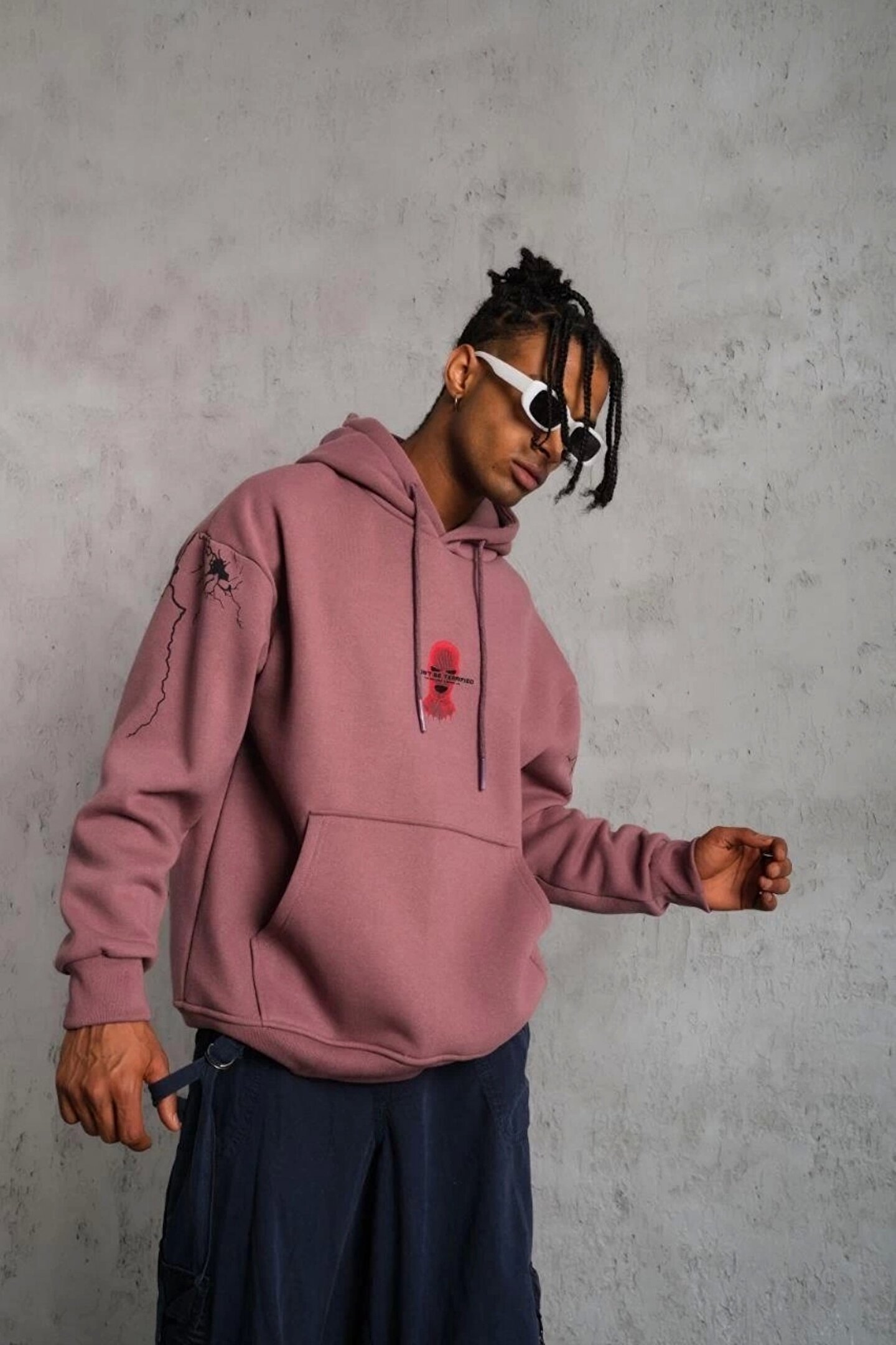 Bijuterria Erkek Maske Baskılı Kapüşonlu Sweat - Gül Kurusu