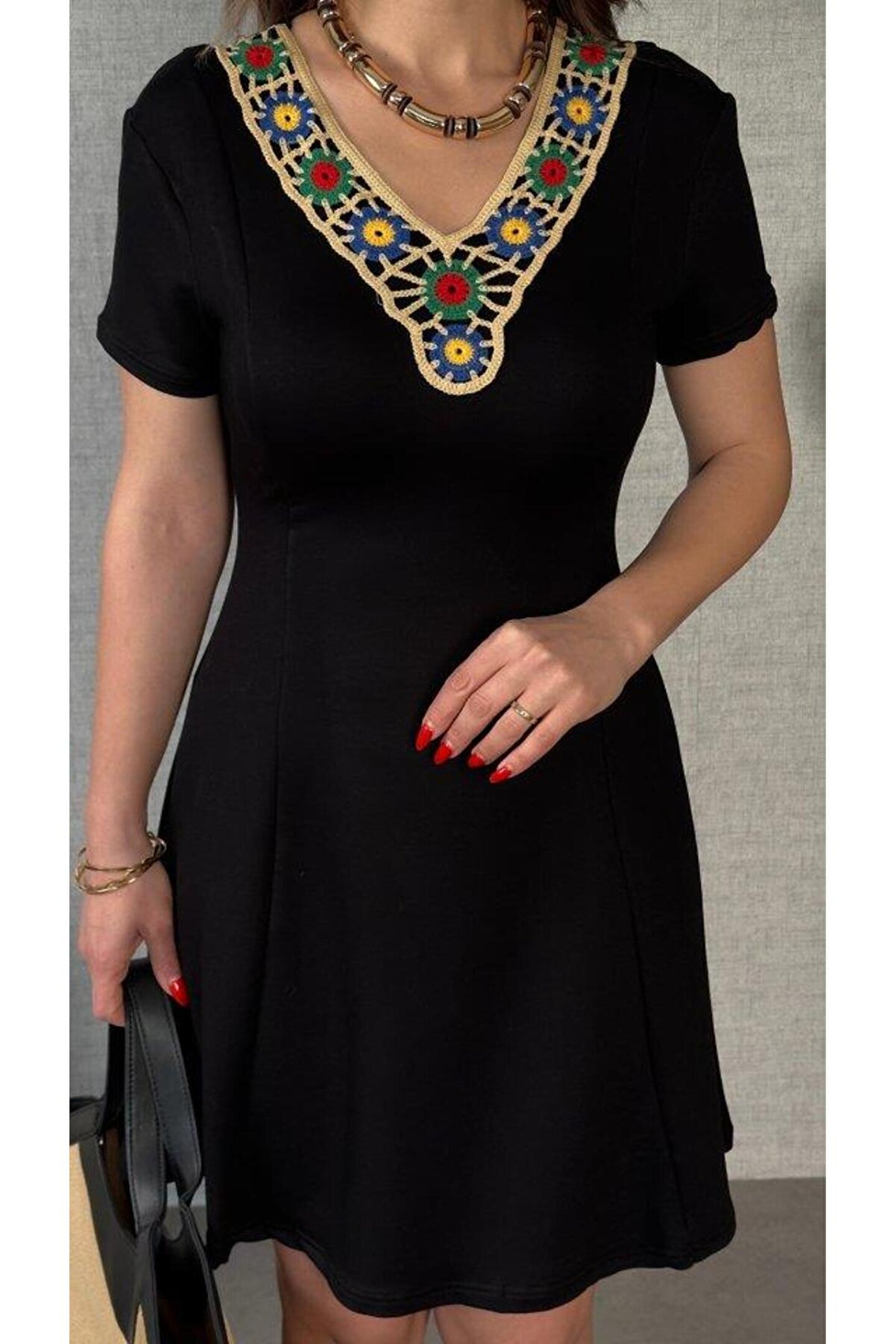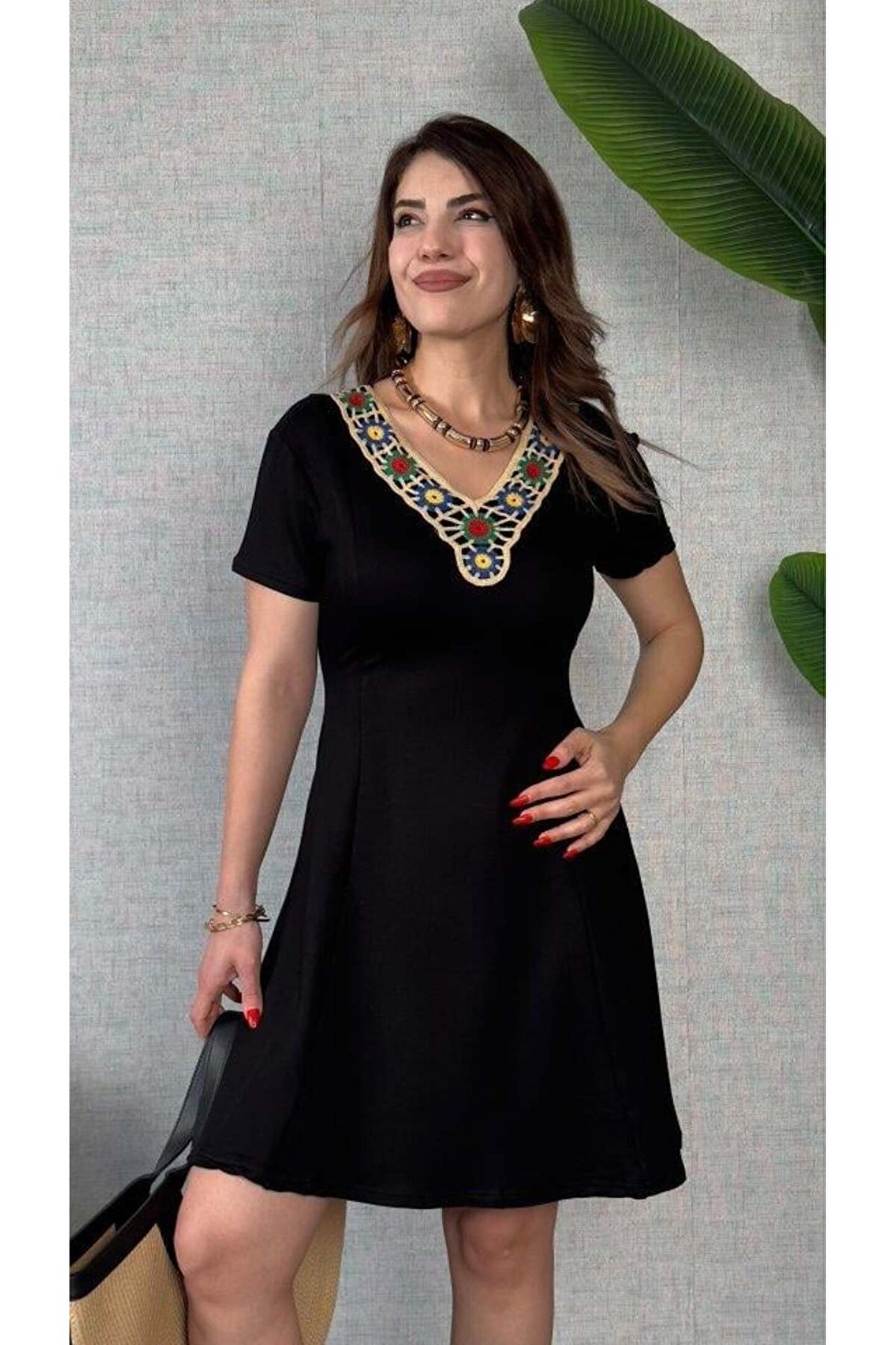 Kadın Penye Kumaş Çiçek Desenli Nakışlı Elbise