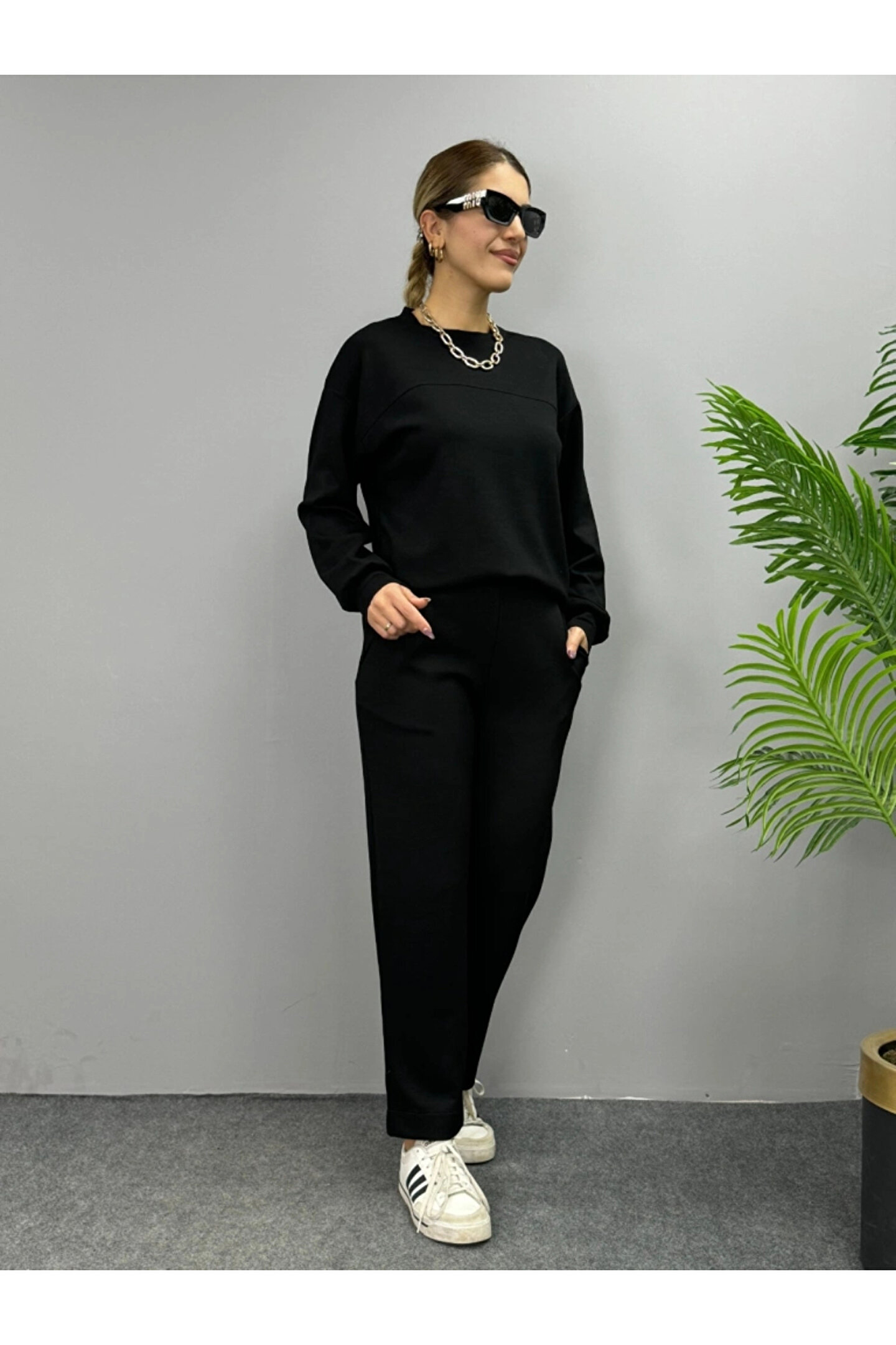 Bijuterria Kadın Uzun Kollu Bisiklet Yaka Viskon Iki Iplik Bluz Ve Pantolon Ikili Takım