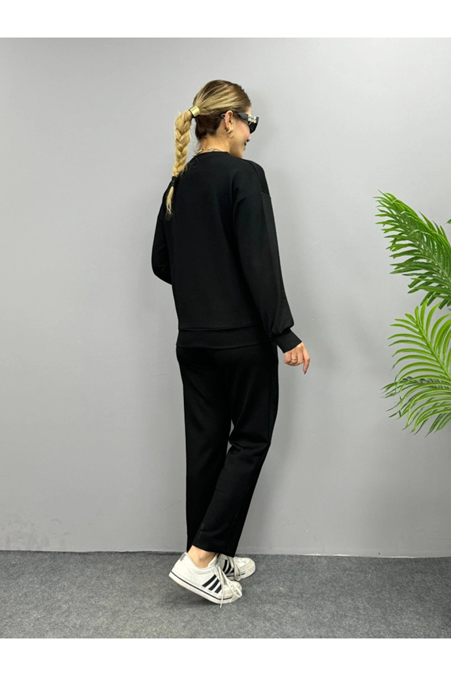 Kadın Uzun Kollu Bisiklet Yaka Viskon Iki Iplik Bluz Ve Pantolon Ikili Takım
