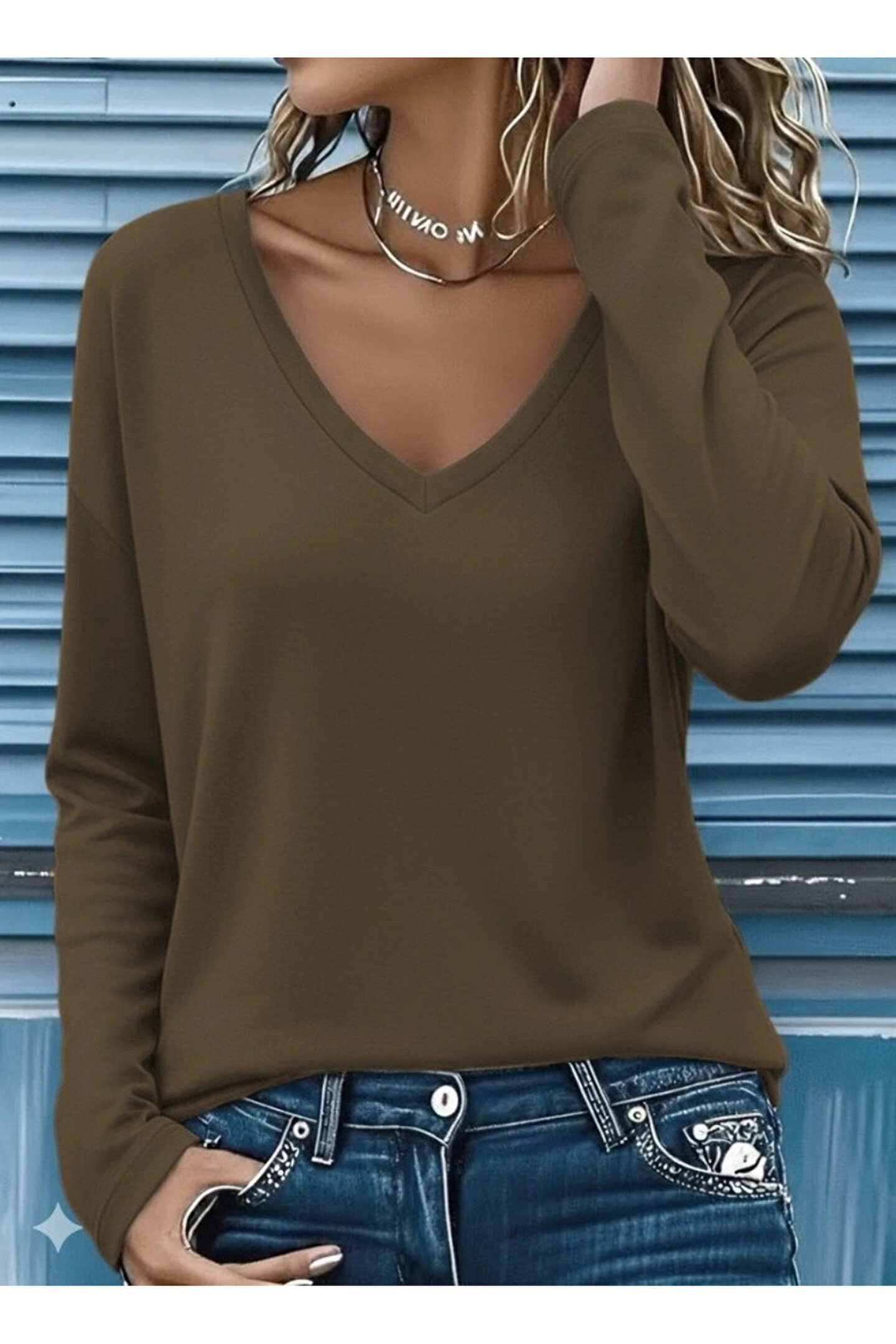 Kadın Uzun Kollu V Yakalı Viskon Iki Iplik Bluz