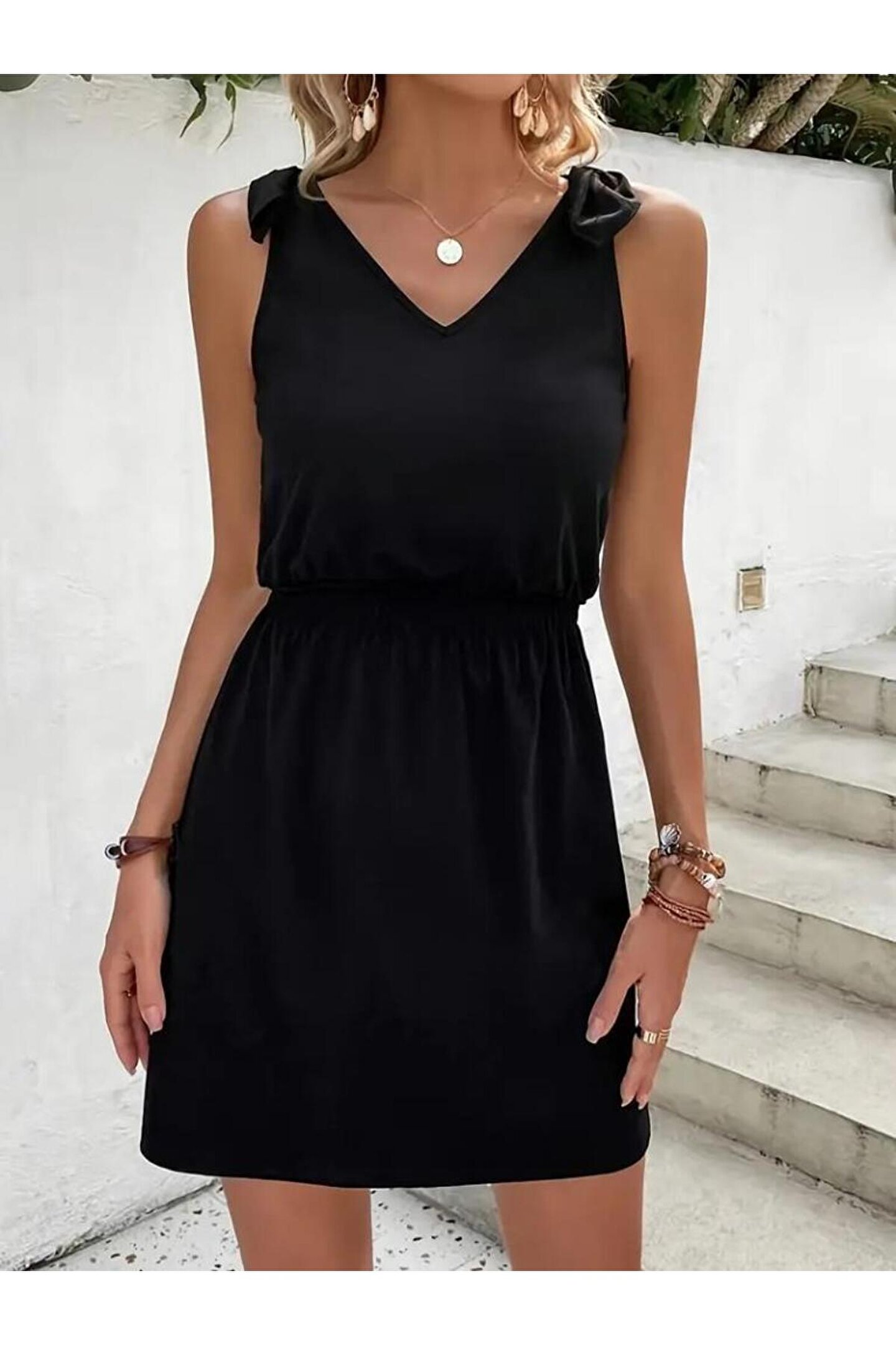 Bijuterria Kadın V Yakalı Belinde Gipe Detay Krep Elbise