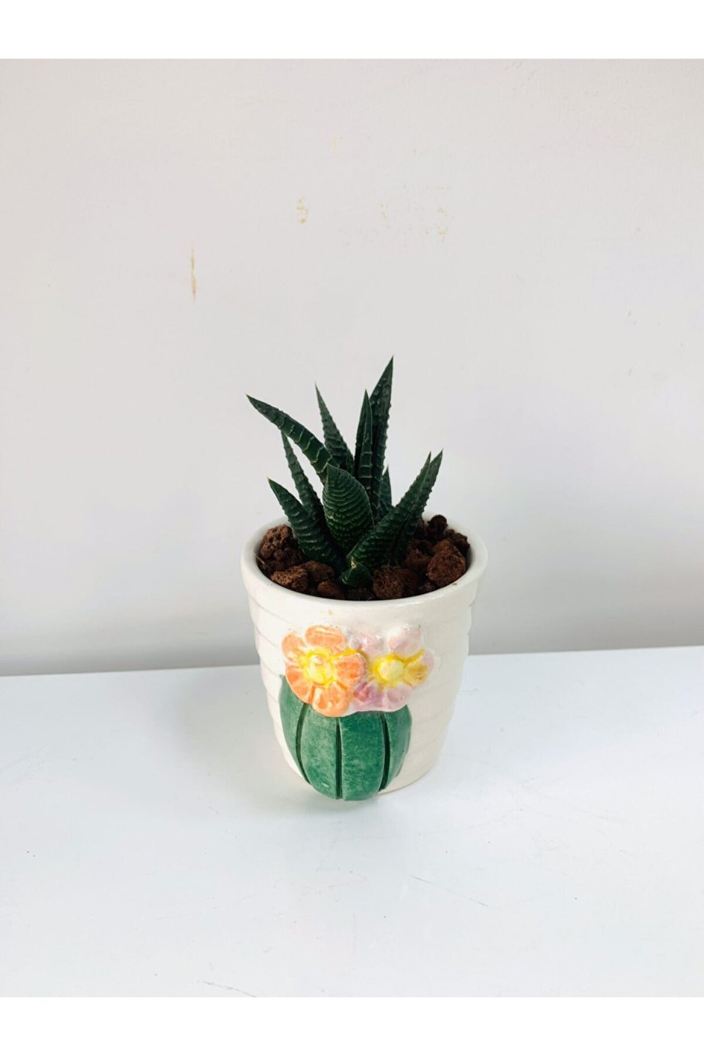 7 cm çapında, 7 cm boyunda kaktüs desenli saksıda howartia