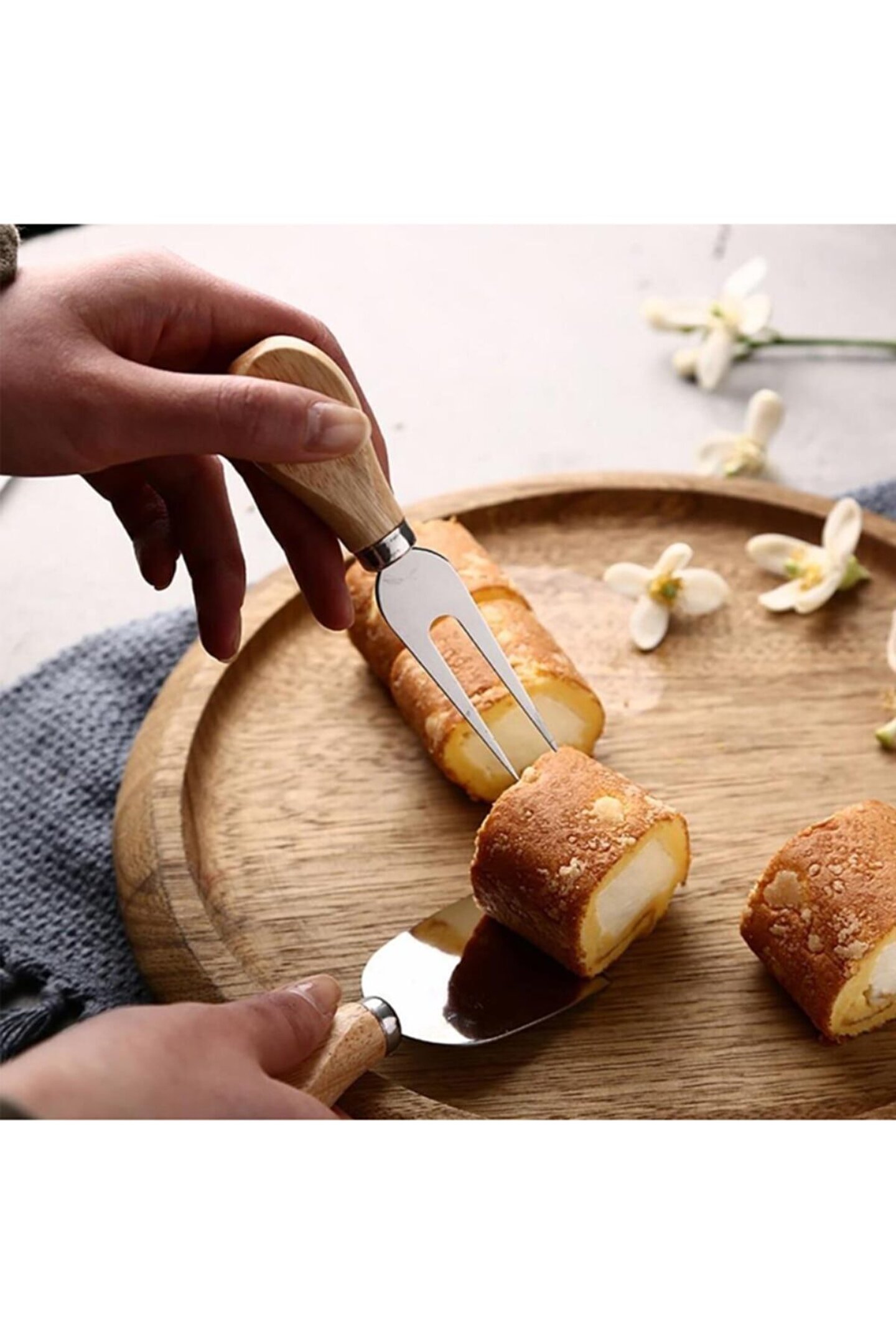 Ahşap Saplı Paslanmaz Çelik Peynir Bıçakları Servis Seti 4 Parça ; 4 Parça Peynir Bıçak Seti peynir sunumlarınıza şıklık katacak. ; Yumuşak ve sert peynirler için ayrı ayrı bambu saplı bıçaklar, spatula ve çataldan oluşan set sayesinde tüm peynirlerinizi aromasını bozmadan, en leziz haliyle servis edebileceksiniz. ; Ürün Ölçüleri ; En: 5 cm ; Boy: 12 cm ; Yükseklik: 2 cm ;