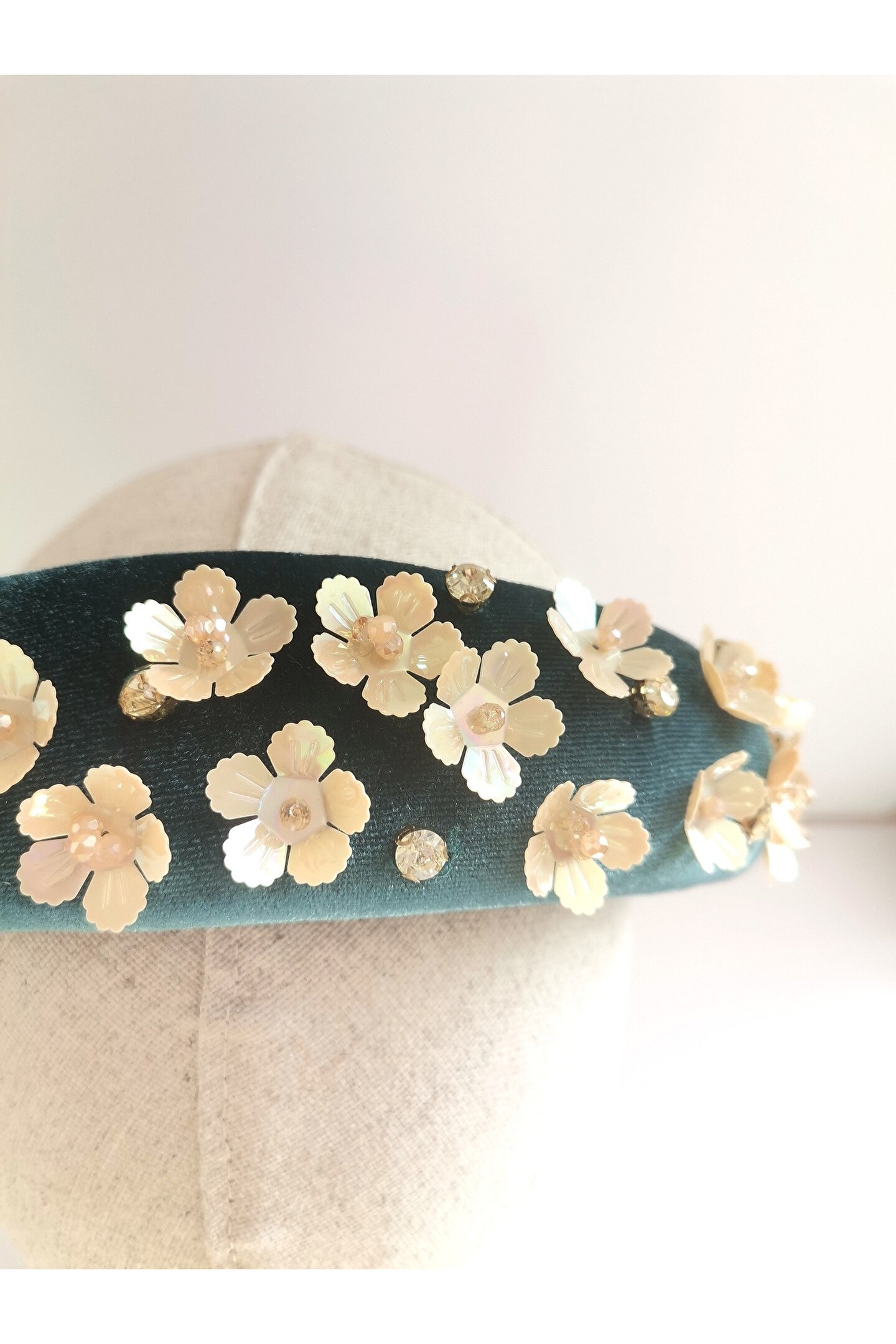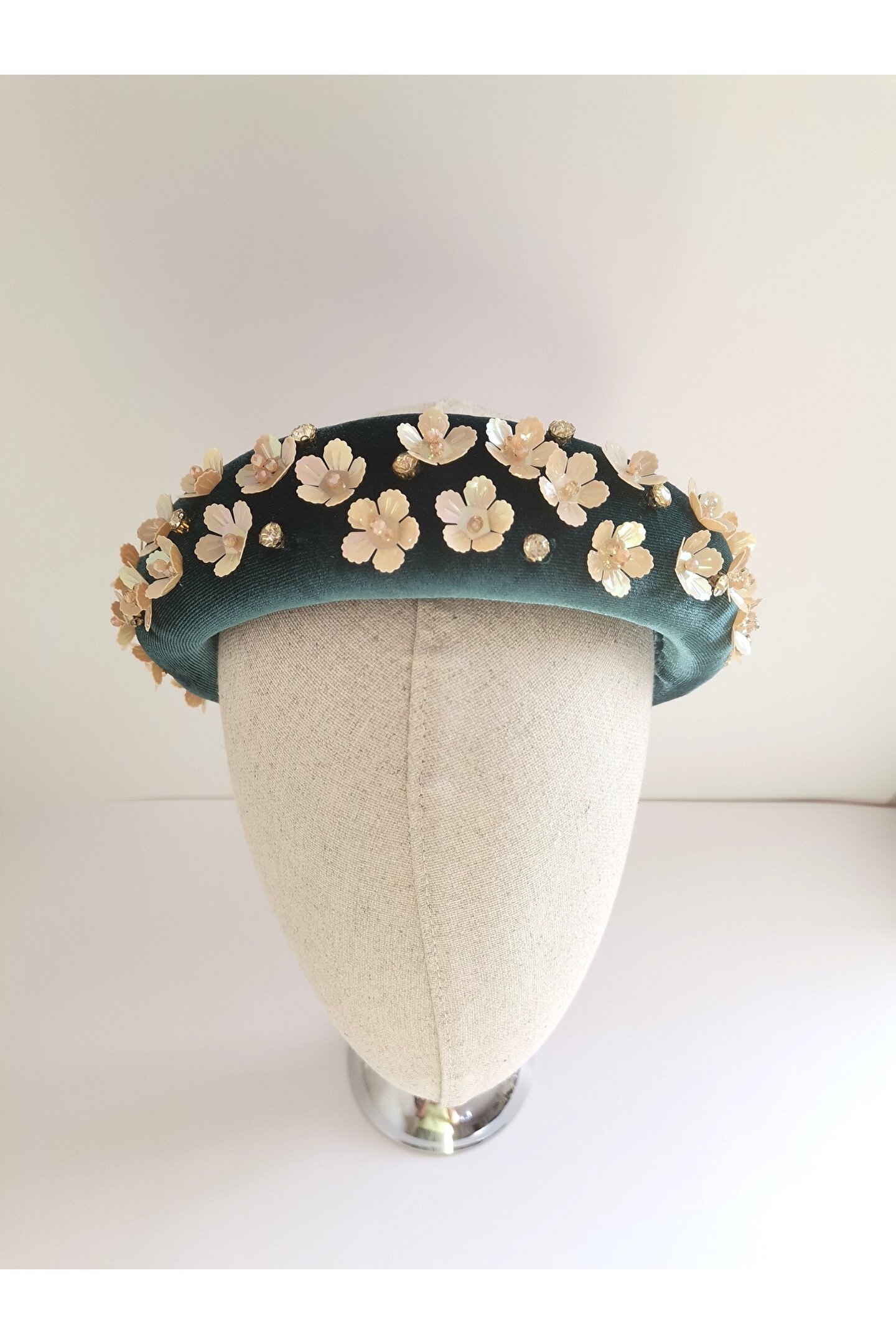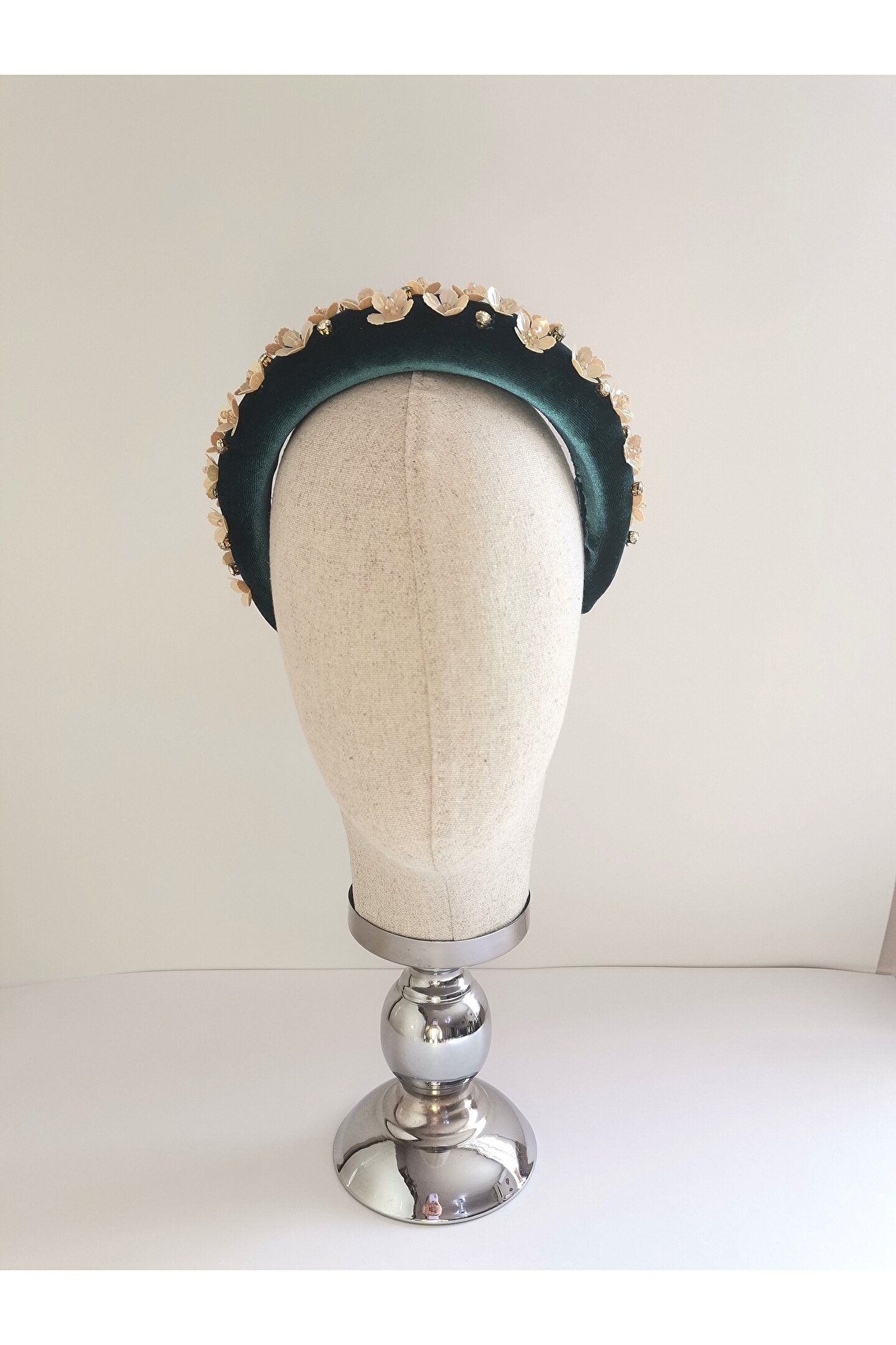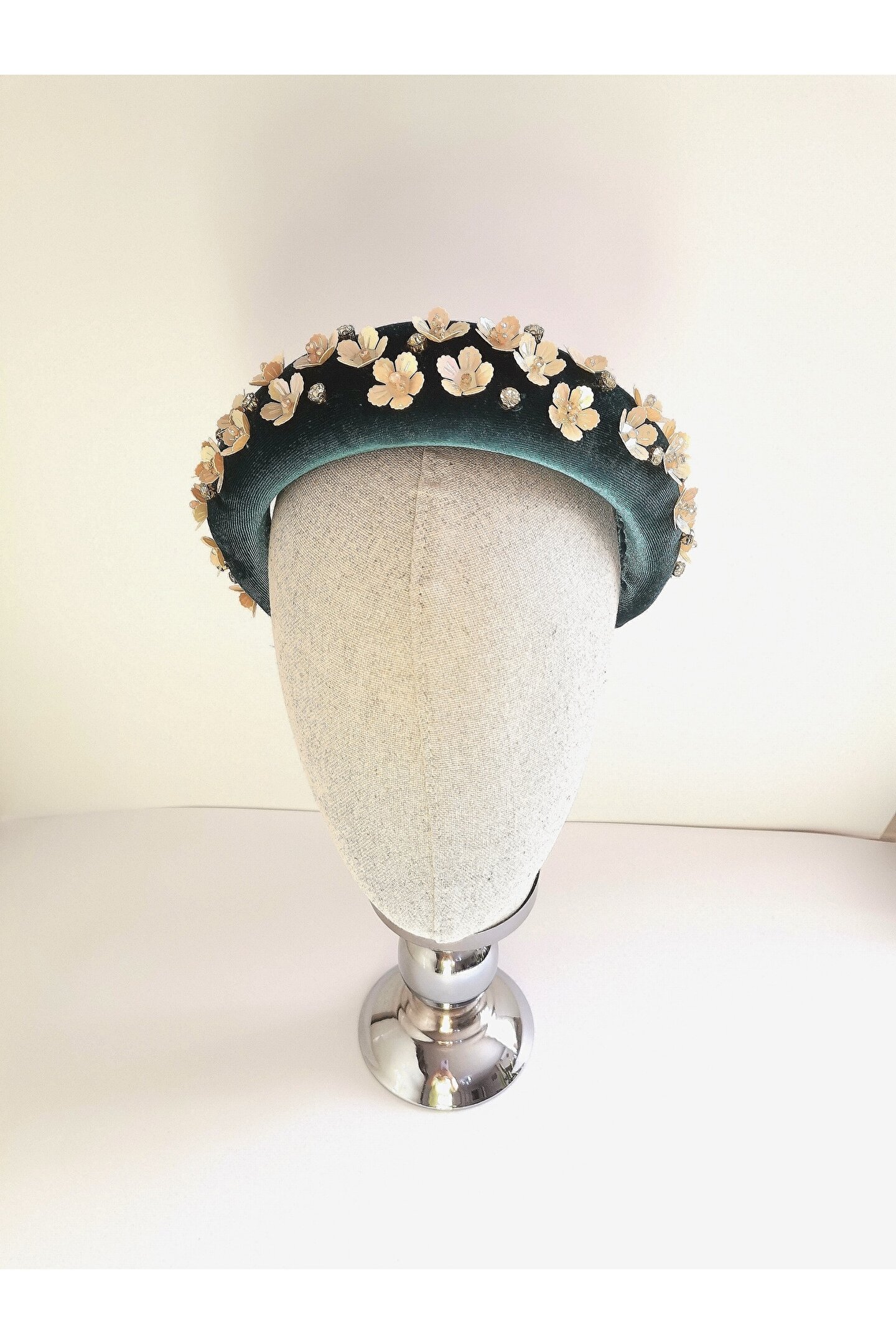 • Cemil İpekçi’nin defilesi için özel olarak tasarlanmış bu taç, kadife kumaş üzerine parlak boncuklar ve zarif çiçek formunda işlenmiş boncuklarla süslenmiştir. El işçiliğiyle hayat bulan bu benzersiz parça, şıklığın ve zarafetin mükemmel bir yansımasıdır. Kadifenin yumuşak dokusu ve boncukların göz alıcı parıltısı bir araya gelerek bu taçı hem özel etkinliklerde hem de günlük kullanımlarda tercih edilebilecek eşsiz bir aksesuar haline getiriyor. Göz kamaştırıcı detaylarıyla her stile zarif bir dokunuş katan bu taç, sofistike bir görünüm arayanlar için ideal bir seçimdir.