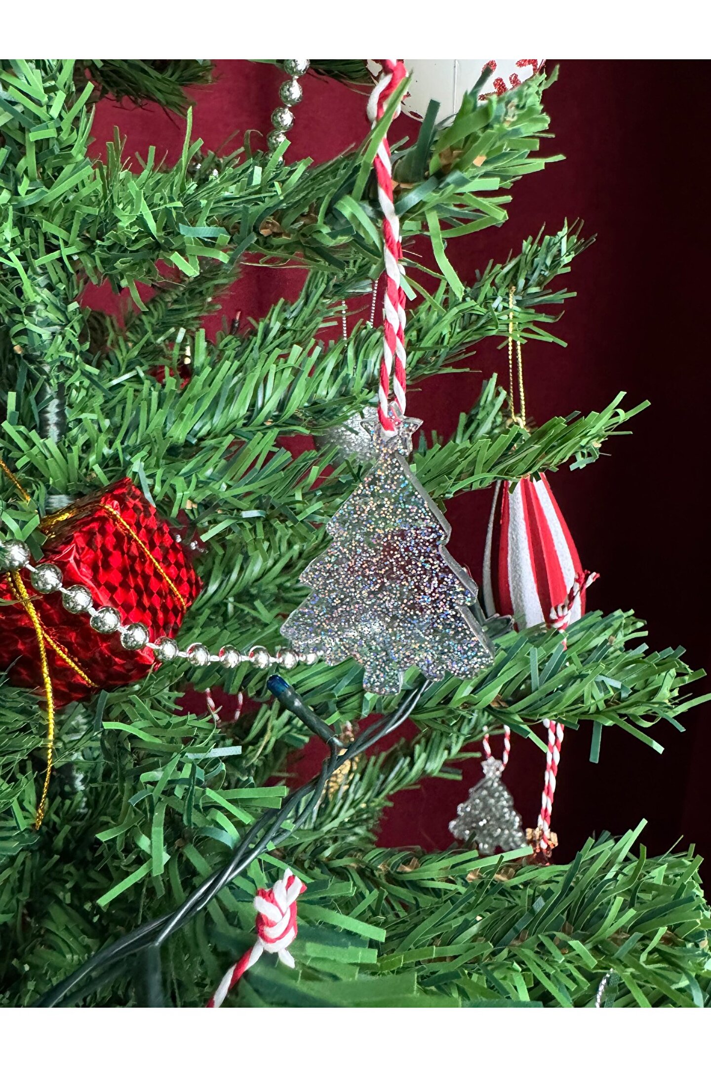 Çam ağacı formunda hazırlanan el emeği epoksi yılbaşı ağacı süsü.