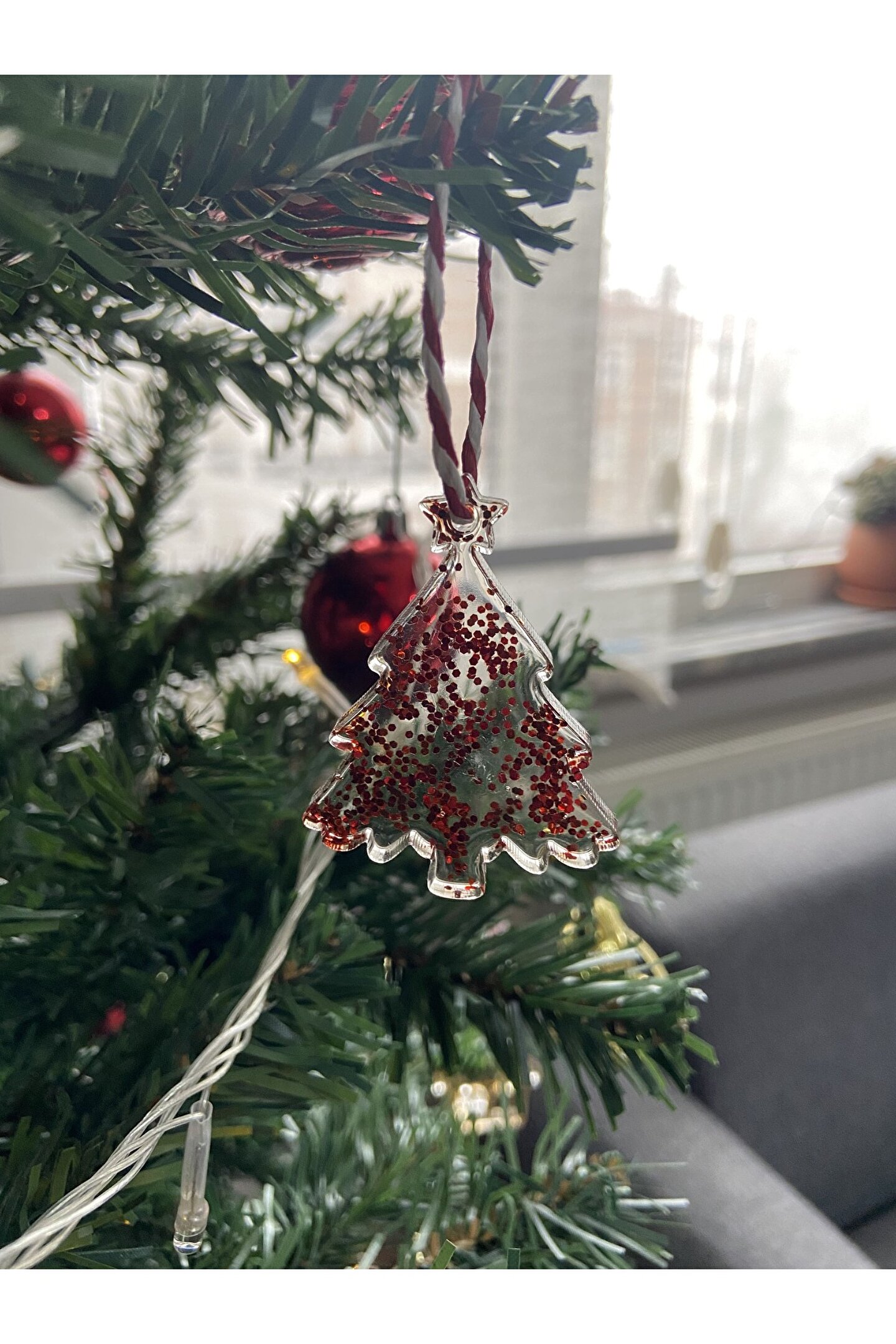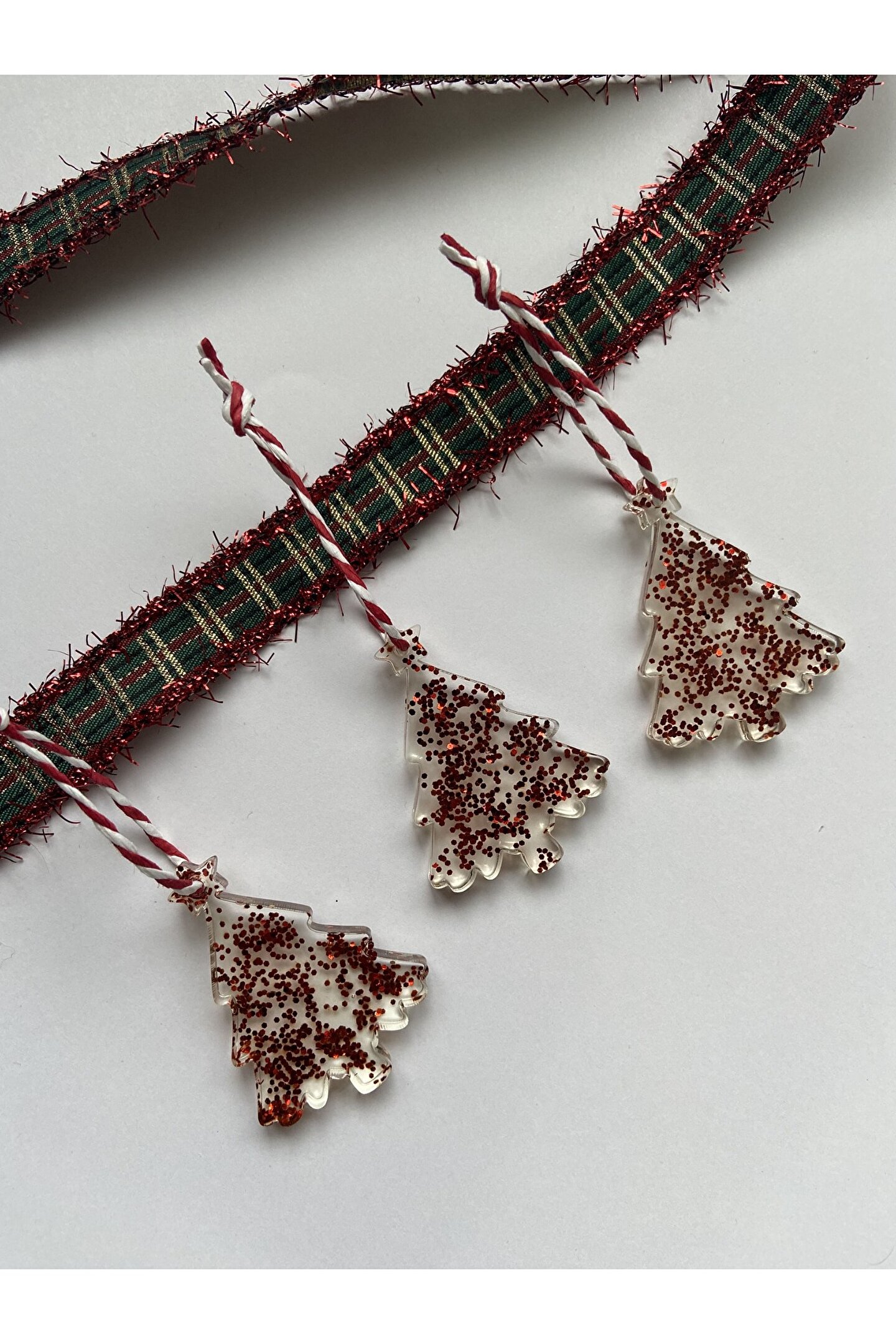 Çam ağacı formunda hazırlanan el emeği epoksi yılbaşı ağacı süsü.