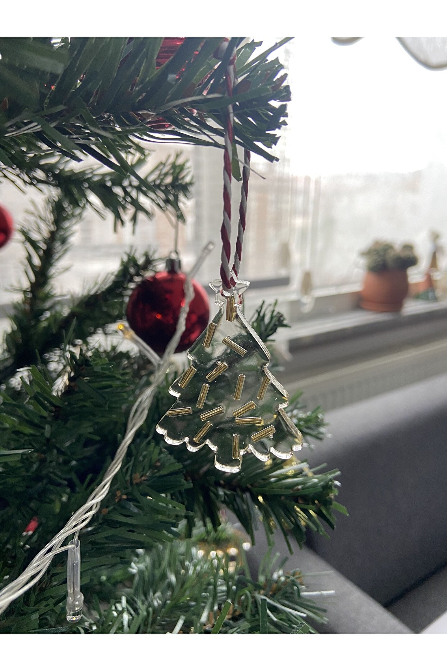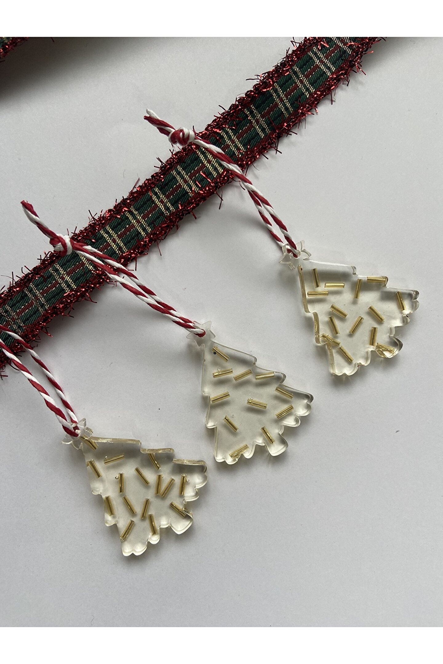 Çam ağacı formunda hazırlanan el emeği epoksi yılbaşı ağacı süsü.