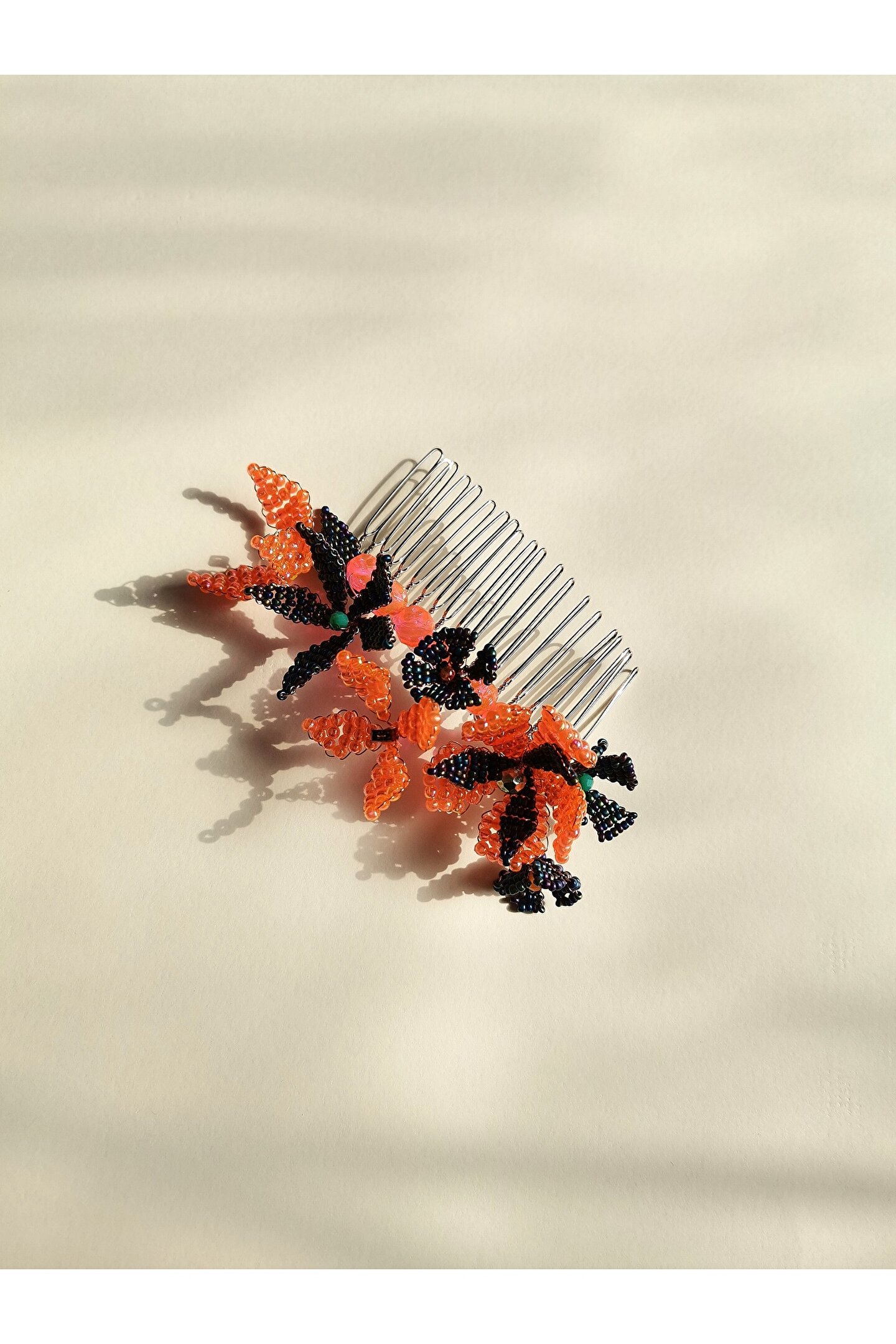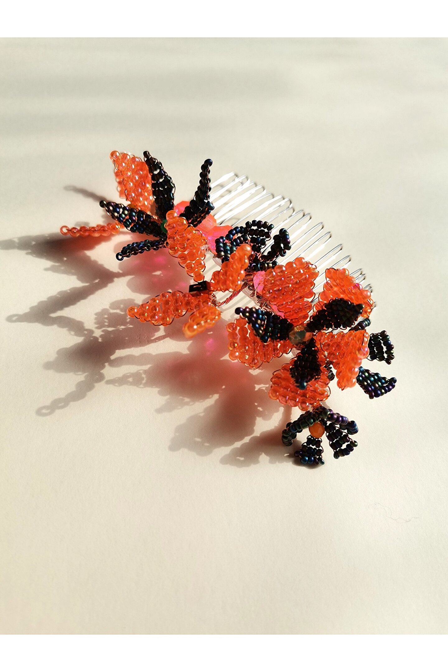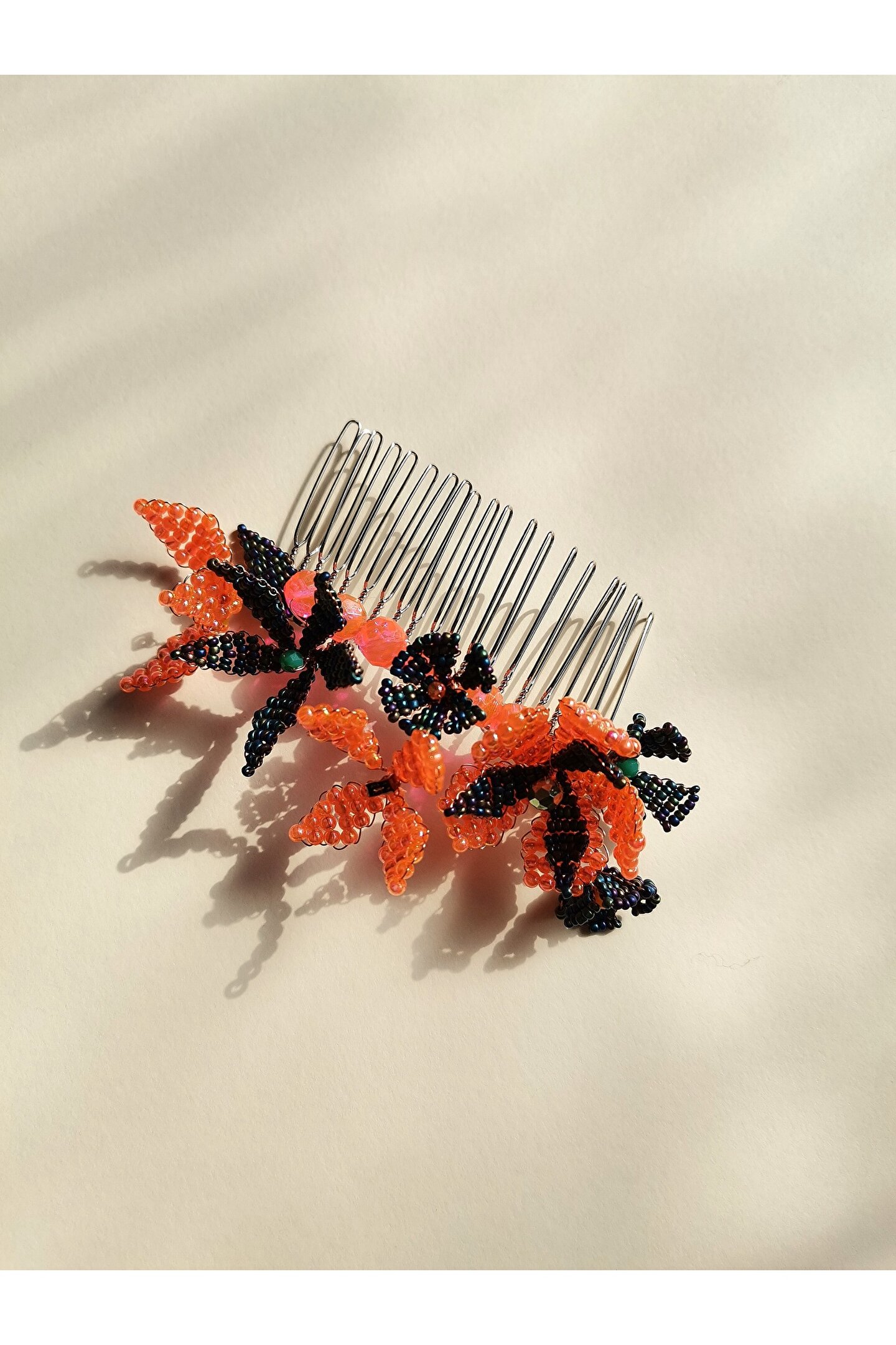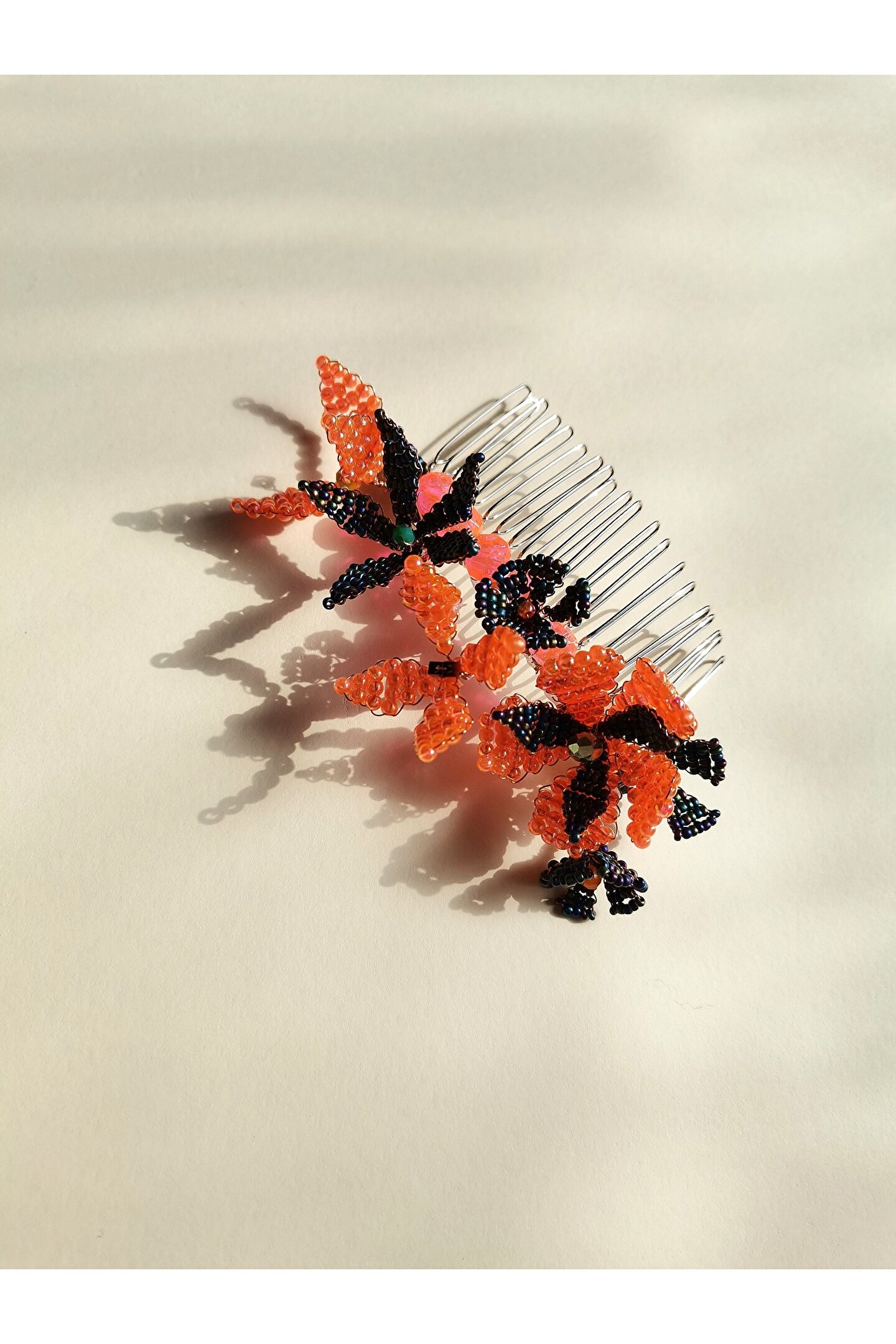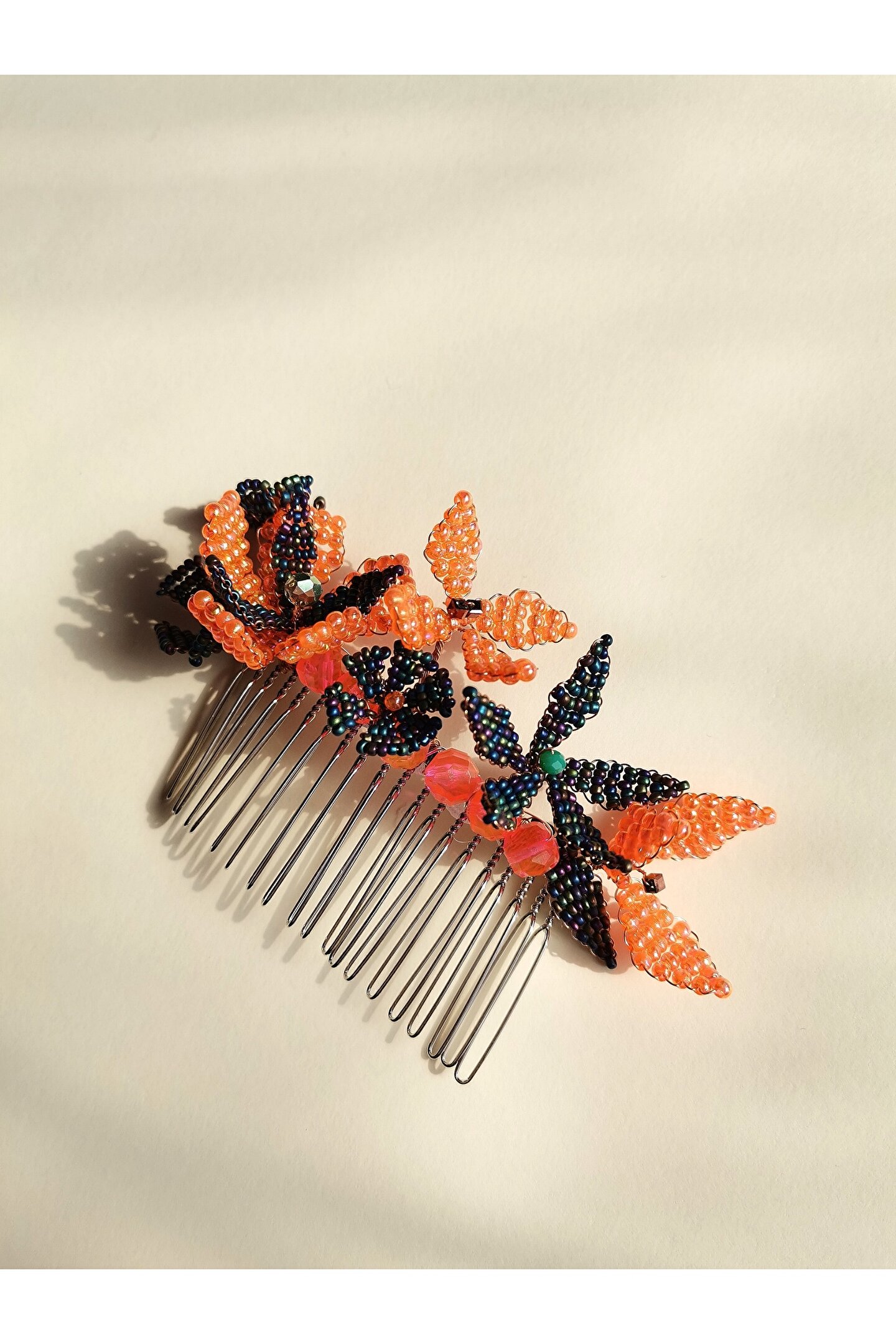 • Cam boncuklar ile hazırlanmış özel tasarım tarak toka.